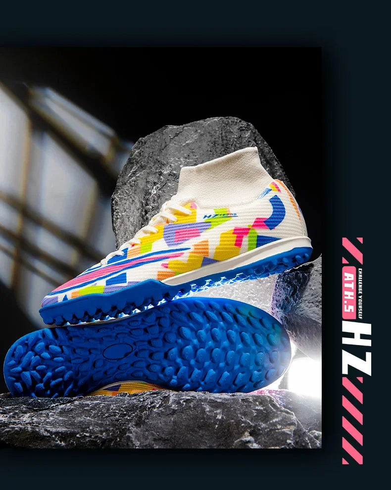 • High-Performance Traction: Equipped with advanced non-slip soles, these football boots ensure maximum grip on both indoor surfaces and outdoor fields. You'll maintain control and stability during every maneuver, whether you're playing on astro turf or a traditional football pitch.