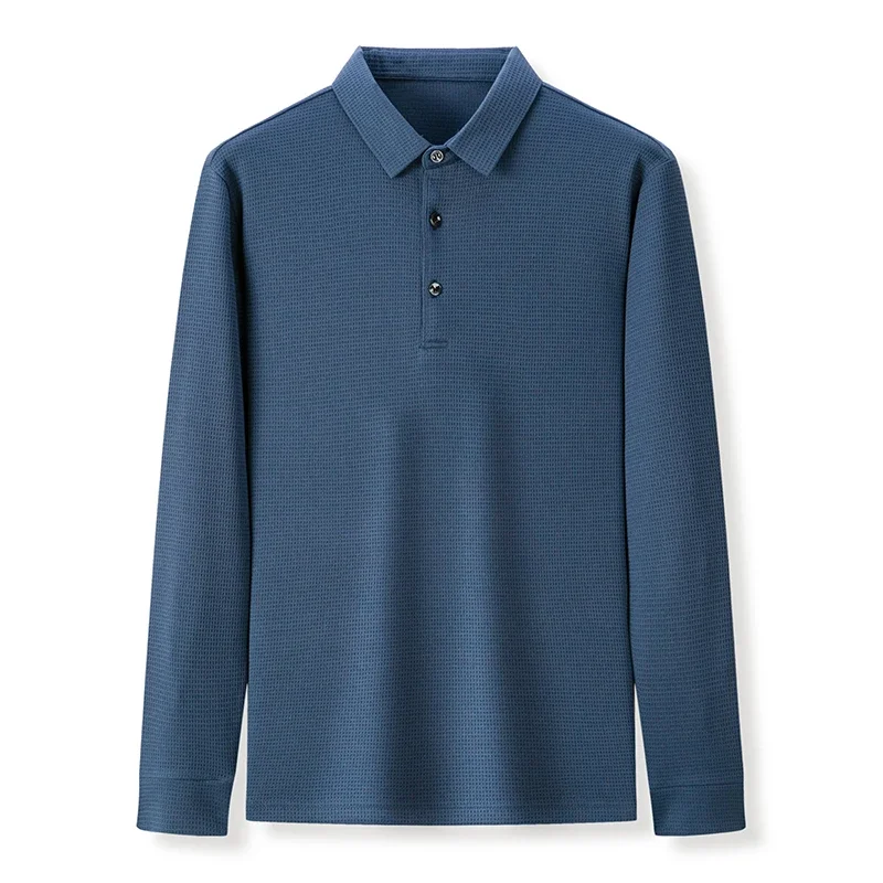 Men's Business Casual Polo Long Sleeve T-shirt Summer Comfortable Solid Cotton Top
