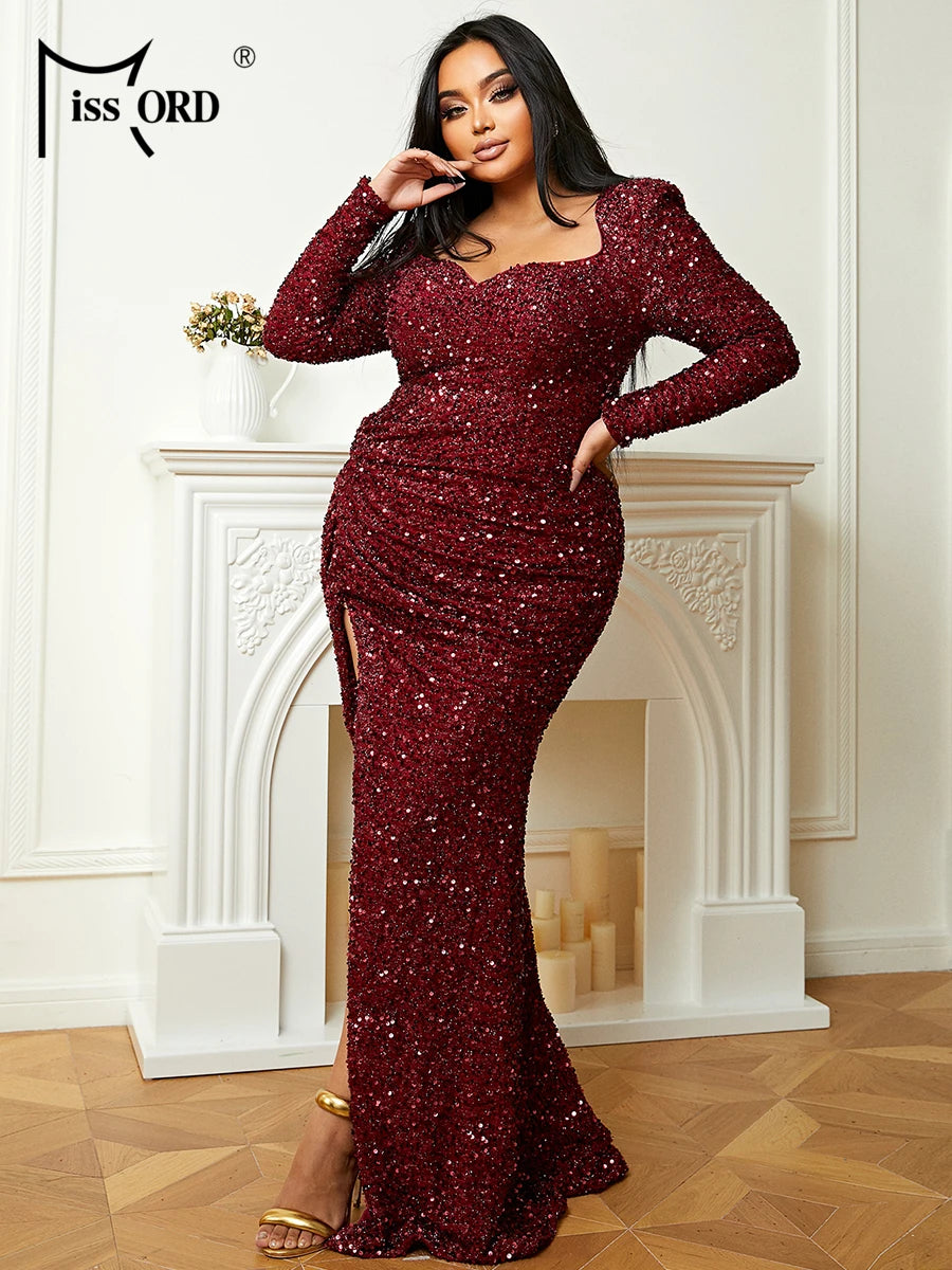 Elevate your elegance with the Missord Wine Plus Size Sequin Wedding Party Dress, a stunning choice for any special occasion. This exquisite dress combines the sophistication of a long sleeve design with the glamour of sequins, perfect for a memorable evening.