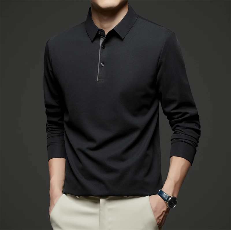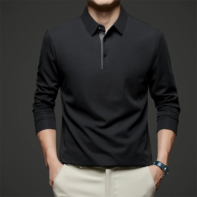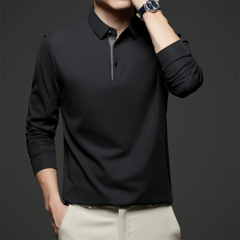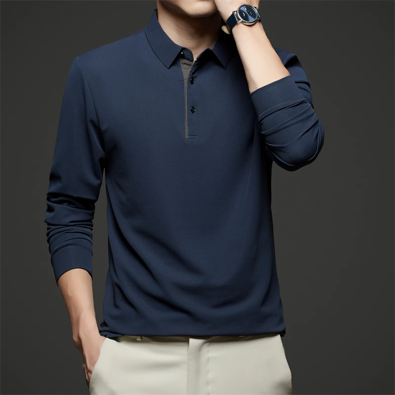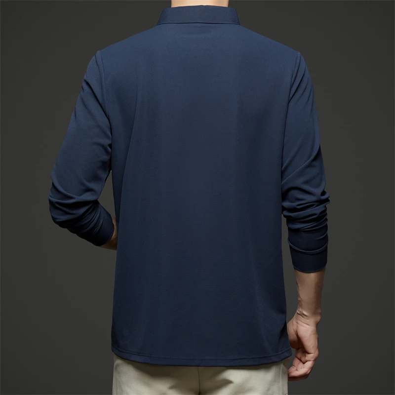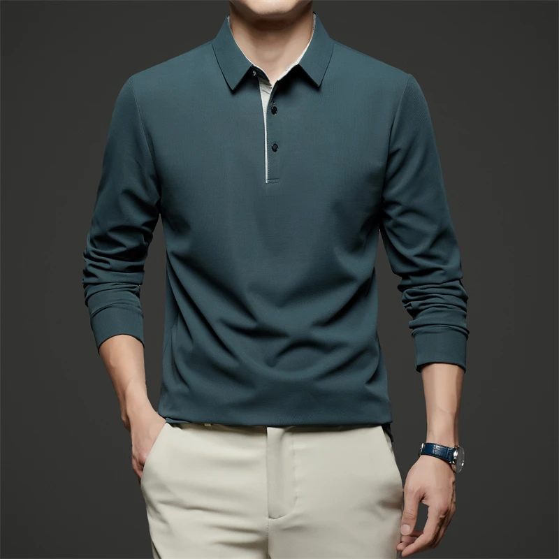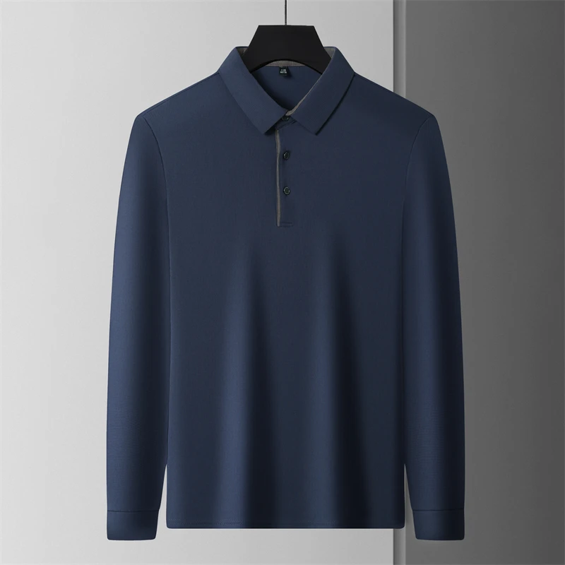 New Men's Business Casual Long Sleeve Solid Color Polo Shirt Fashionable Warm Comfortable Four Seasons Versatile Top
