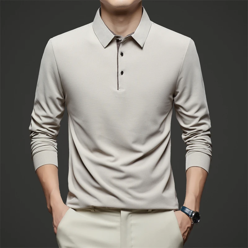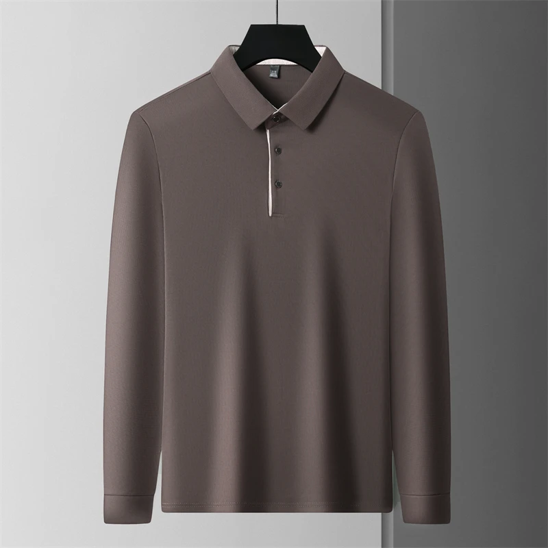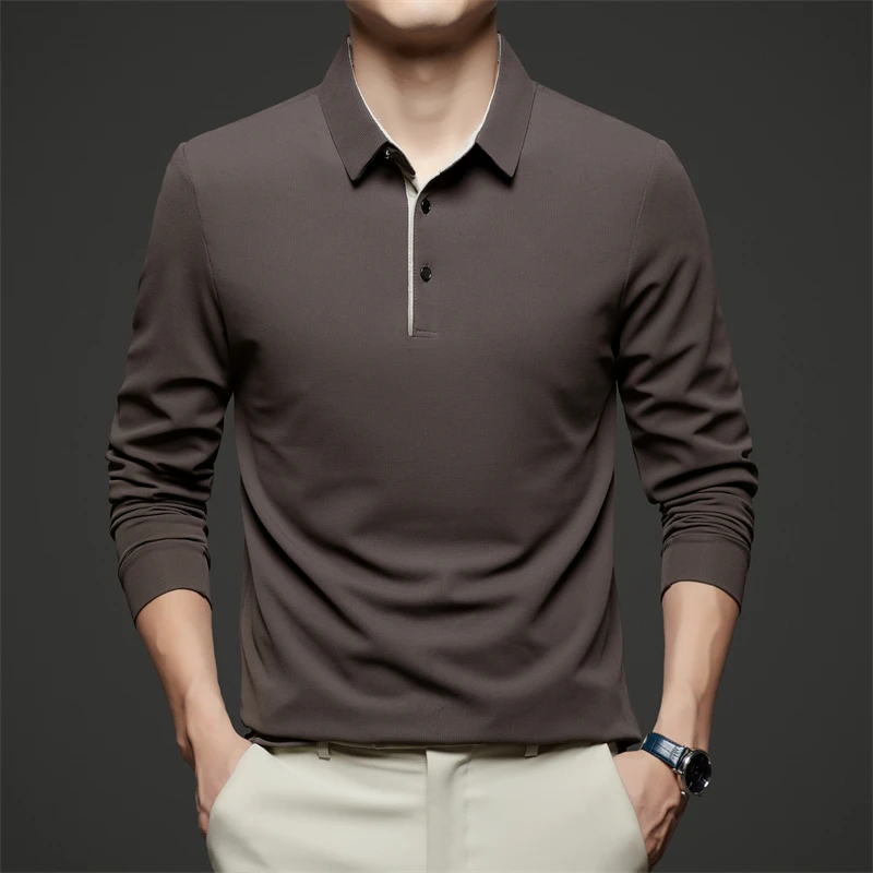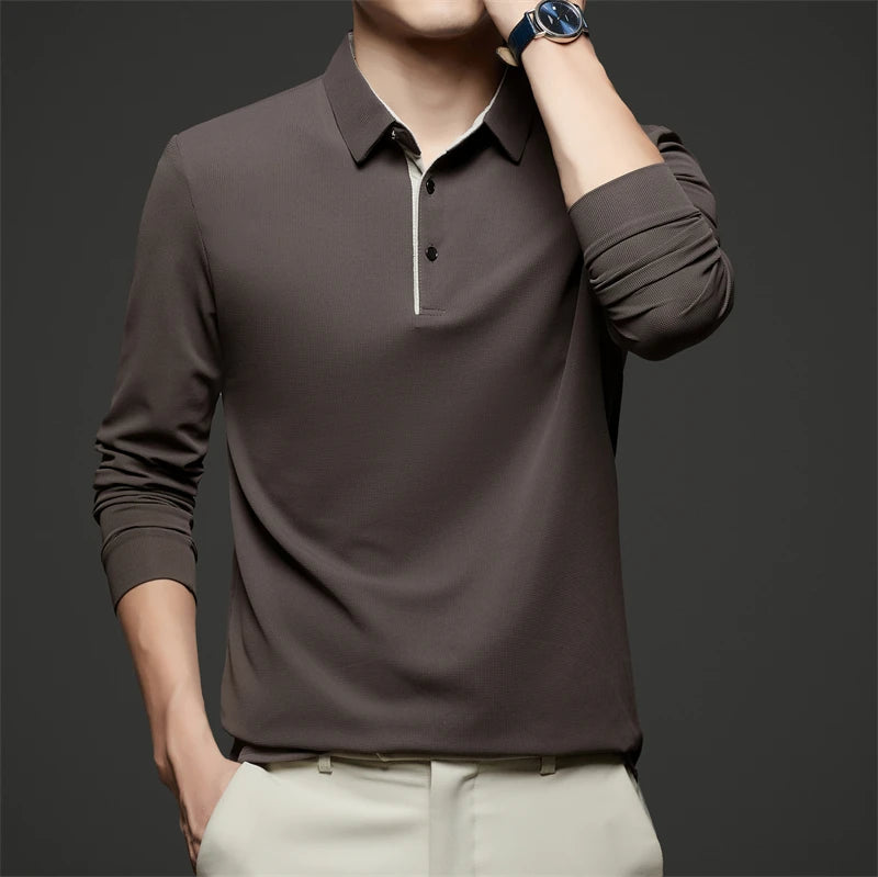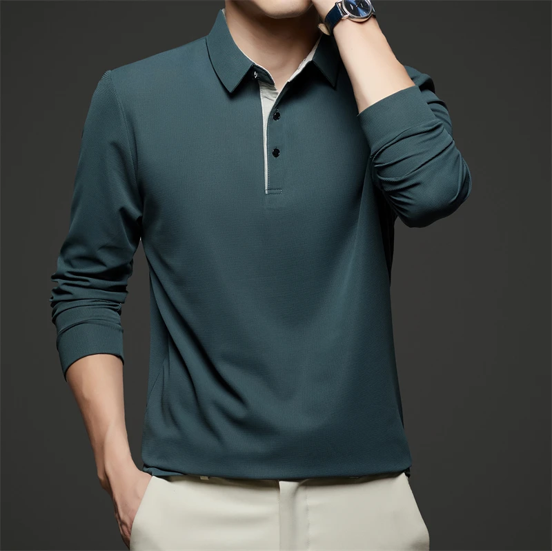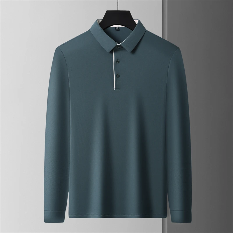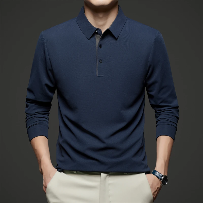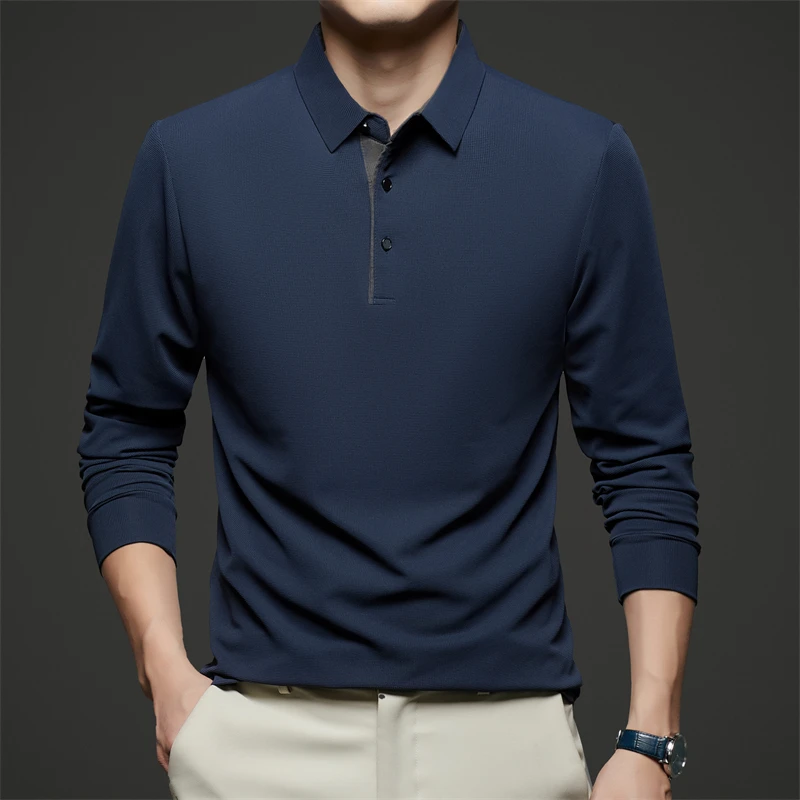 New Men's Business Casual Long Sleeve Solid Color Polo Shirt Fashionable Warm Comfortable Four Seasons Versatile Top