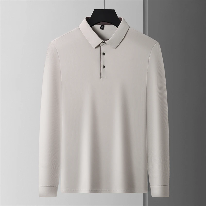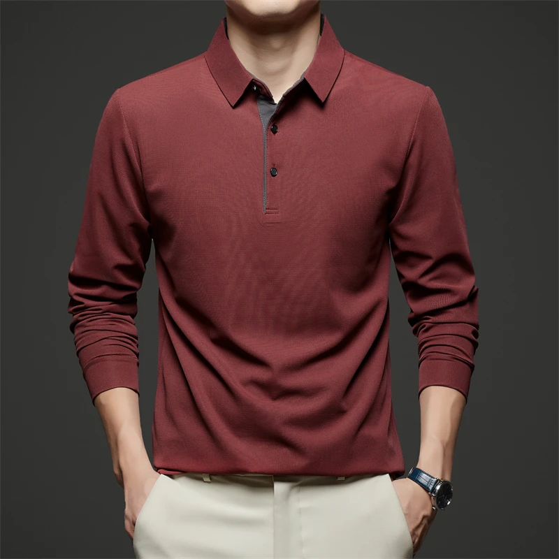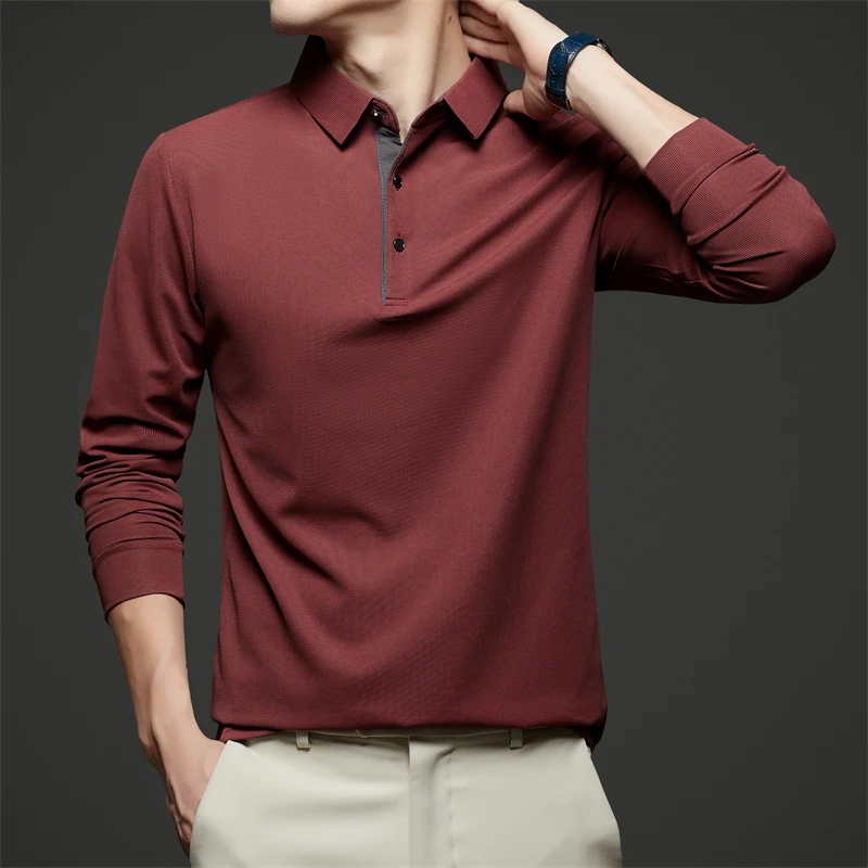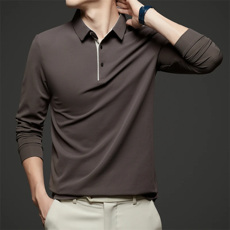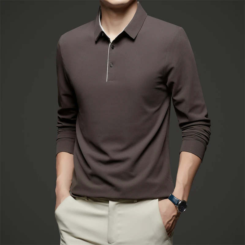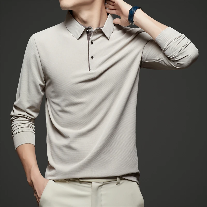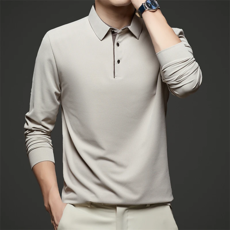 New Men's Business Casual Long Sleeve Solid Color Polo Shirt Fashionable Warm Comfortable Four Seasons Versatile Top