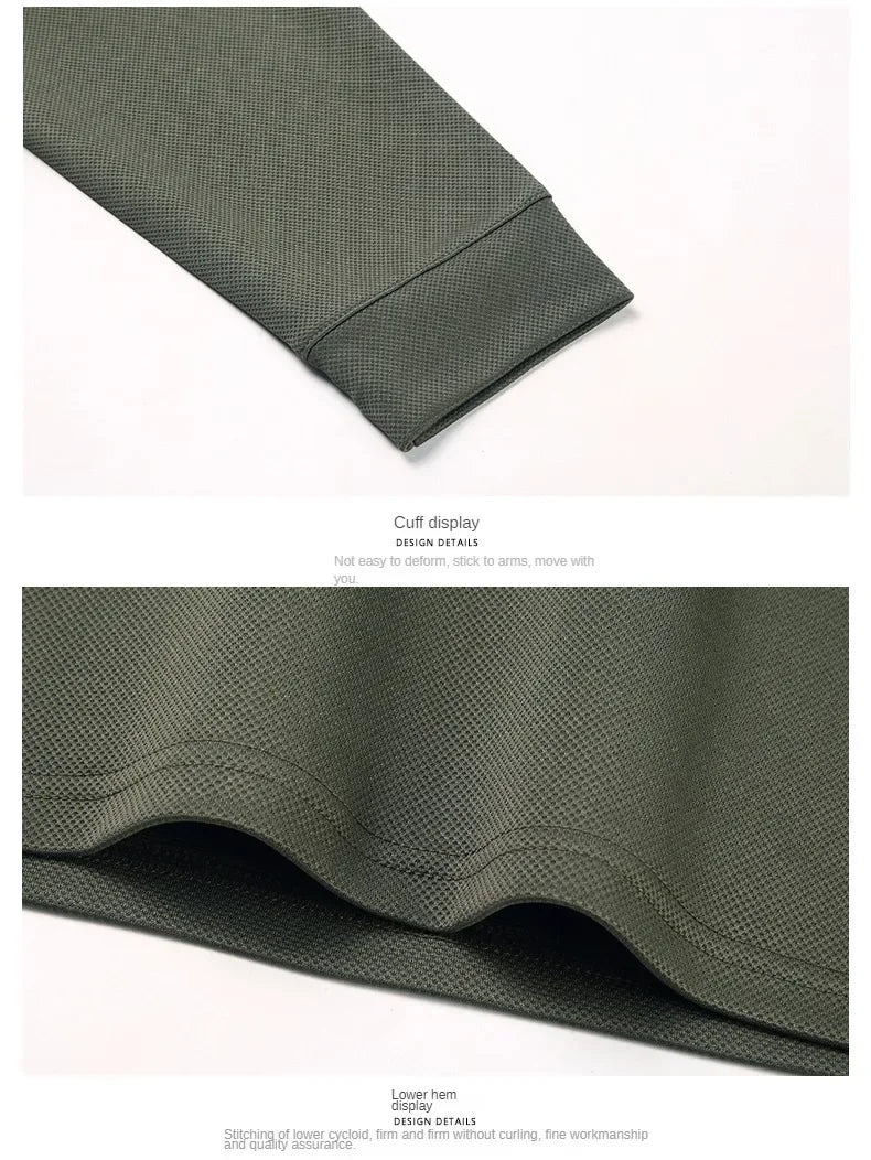 New Men's Long-sleeved Polo Shirt Sweatwear Business Casual Top Fashion Classic Solid Color Male Brand Basic V-neck Top