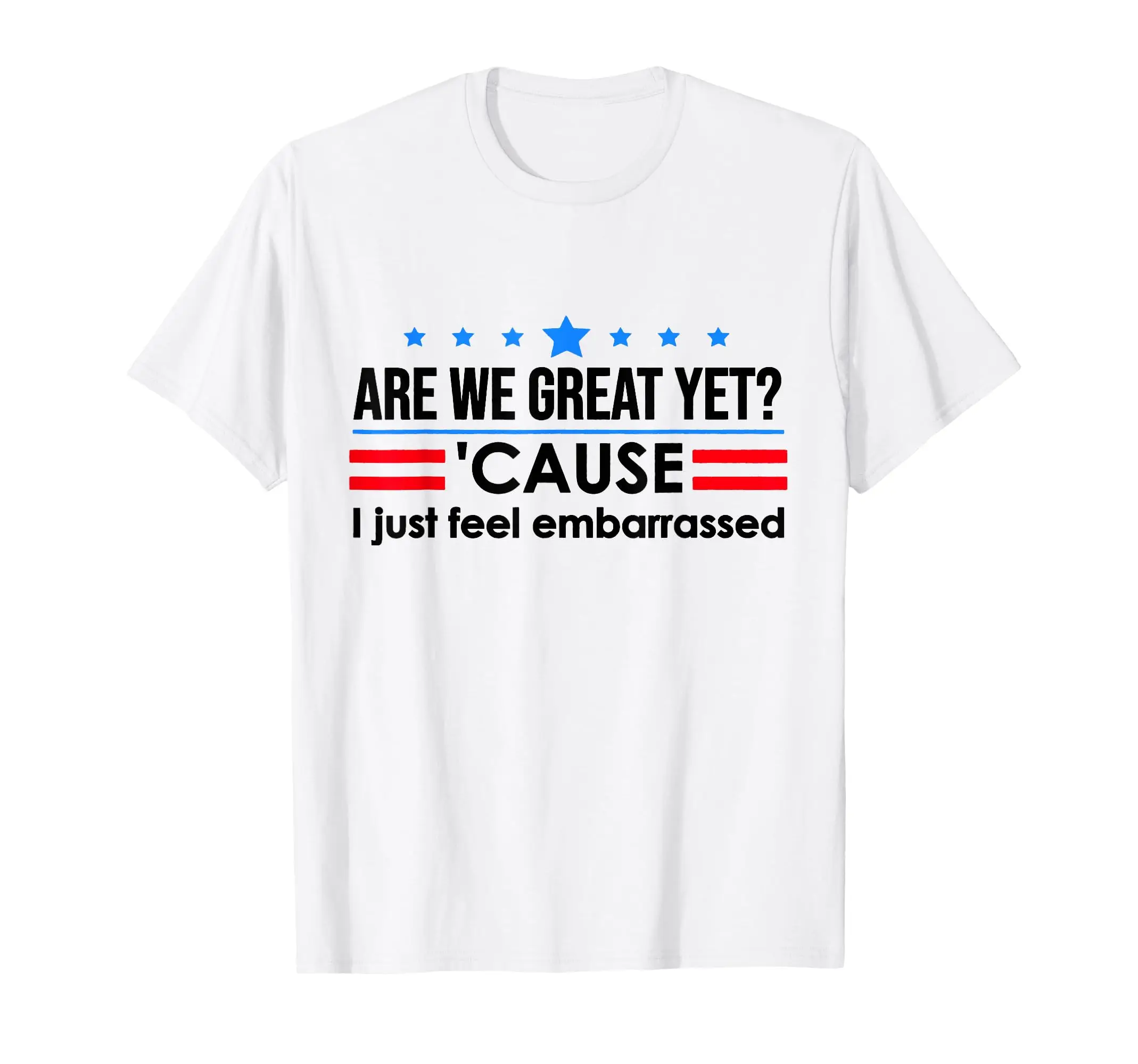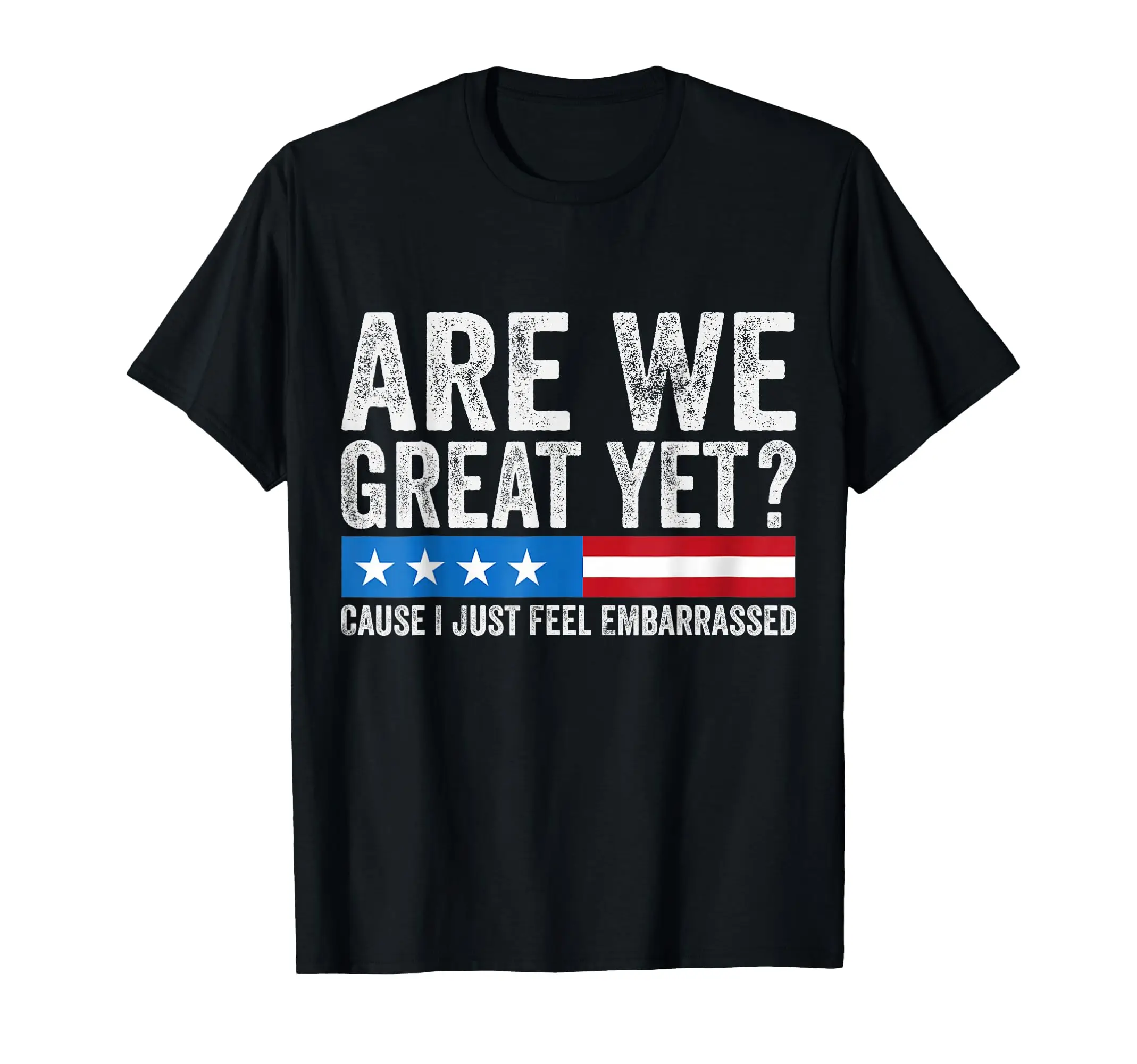 New Pure Cotton Men'sT-Shirt with Are We Great Yet American Flag Print for Casual Wear Graphic Tee Breathable and Comfort