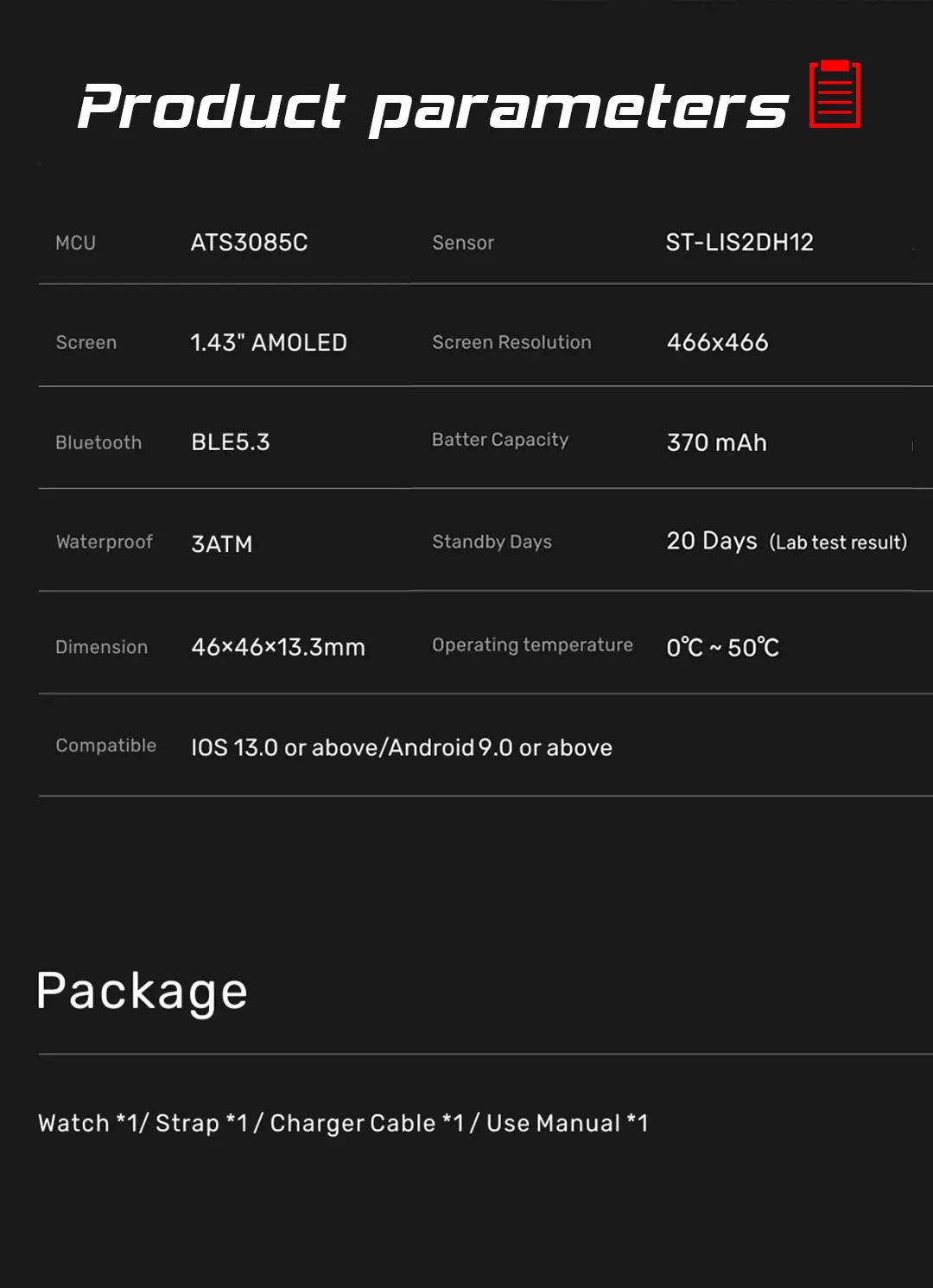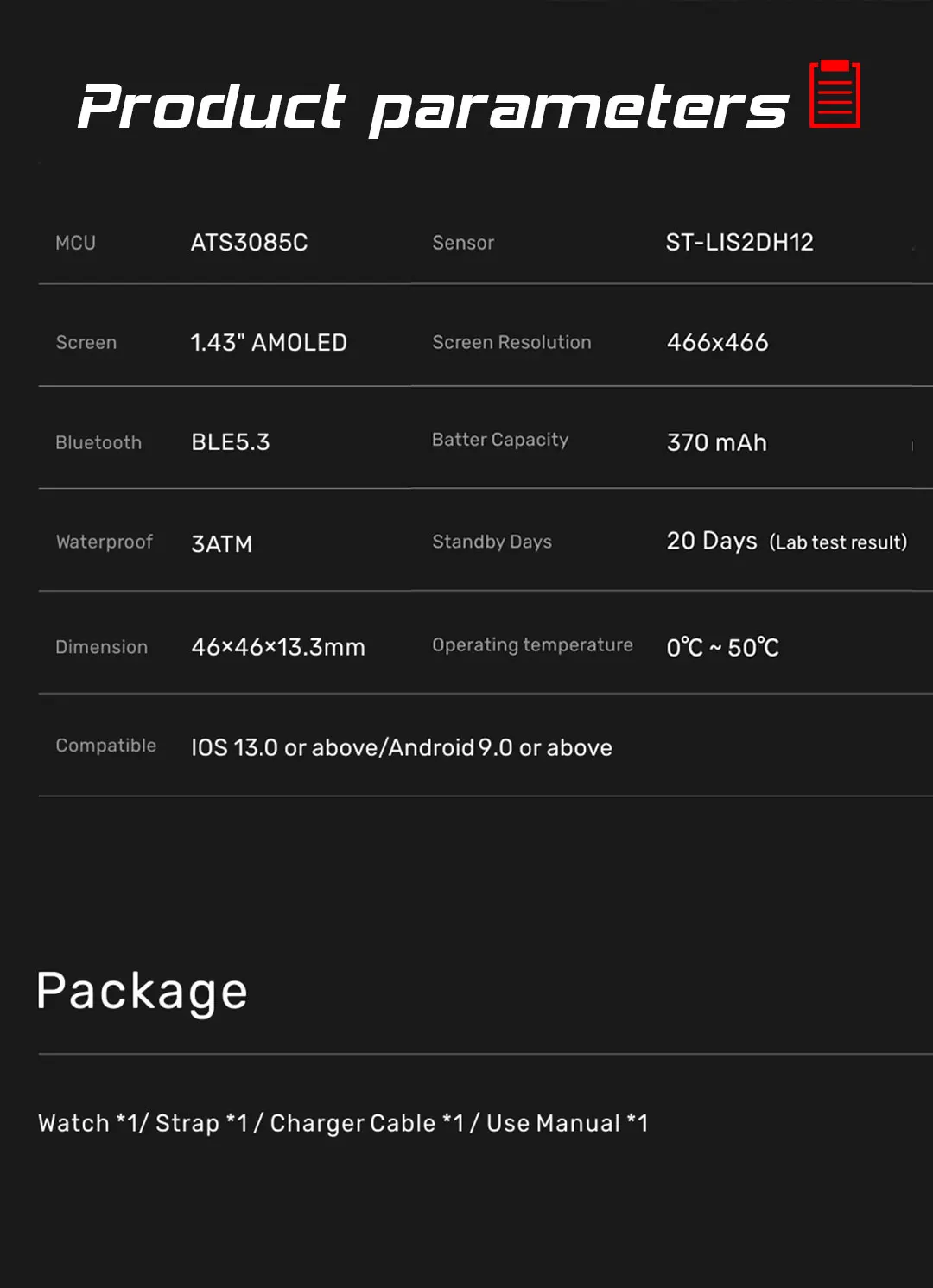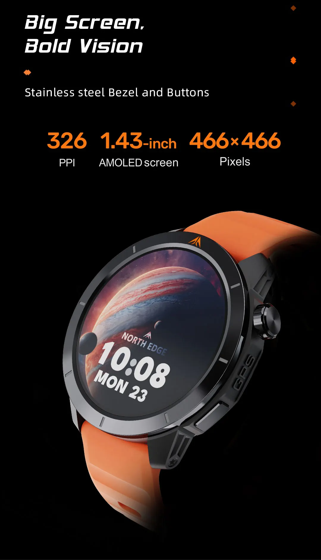 Display: High-definition 466 x 466 AMOLED screen