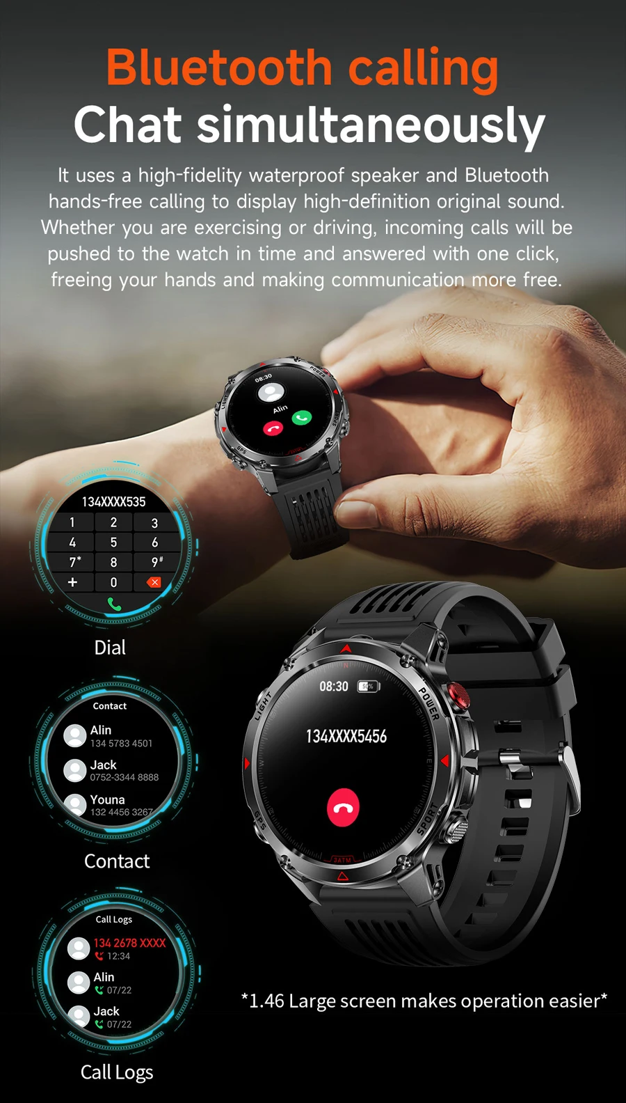 Function 4: 1.46 inch AMOLED HD display screen Outdoor sports watch