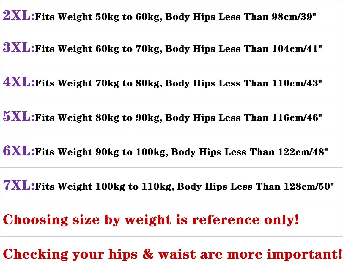 Size: 2XL,3XL,4XL,5XL,6XL,7XL