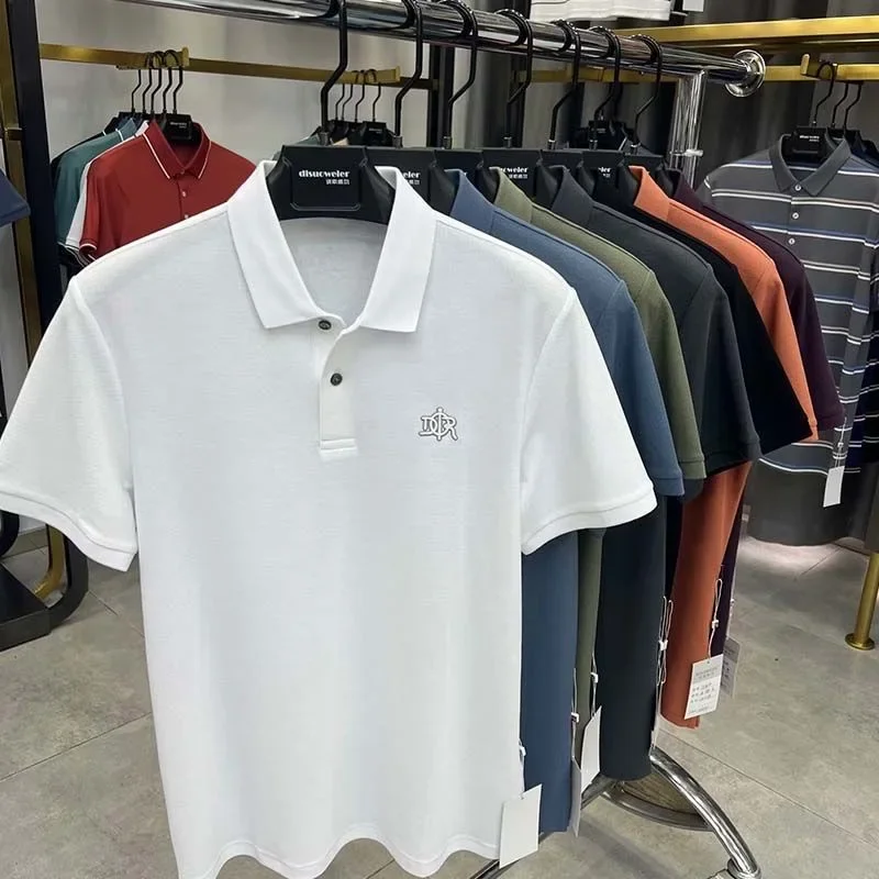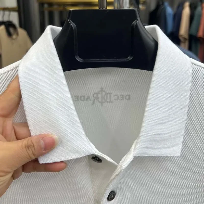 Premium 100% cotton men's short sleeve polo shirt luxury fashion brand letter embossed summer new business casual lapel T-shirt