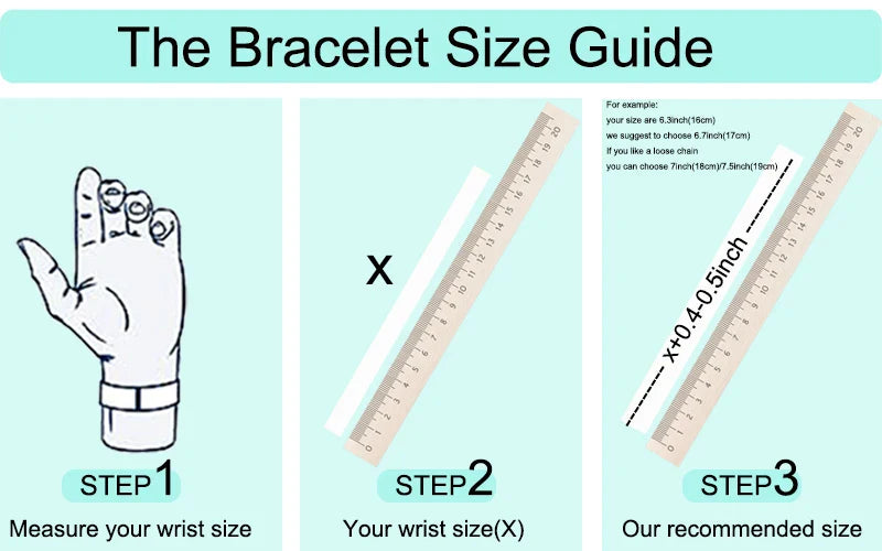 Step3-Suggest add 0.4-5 inches to the measurement to get the length in a comfortable position(The bracelet length does not include the overlapping position of the buckle).