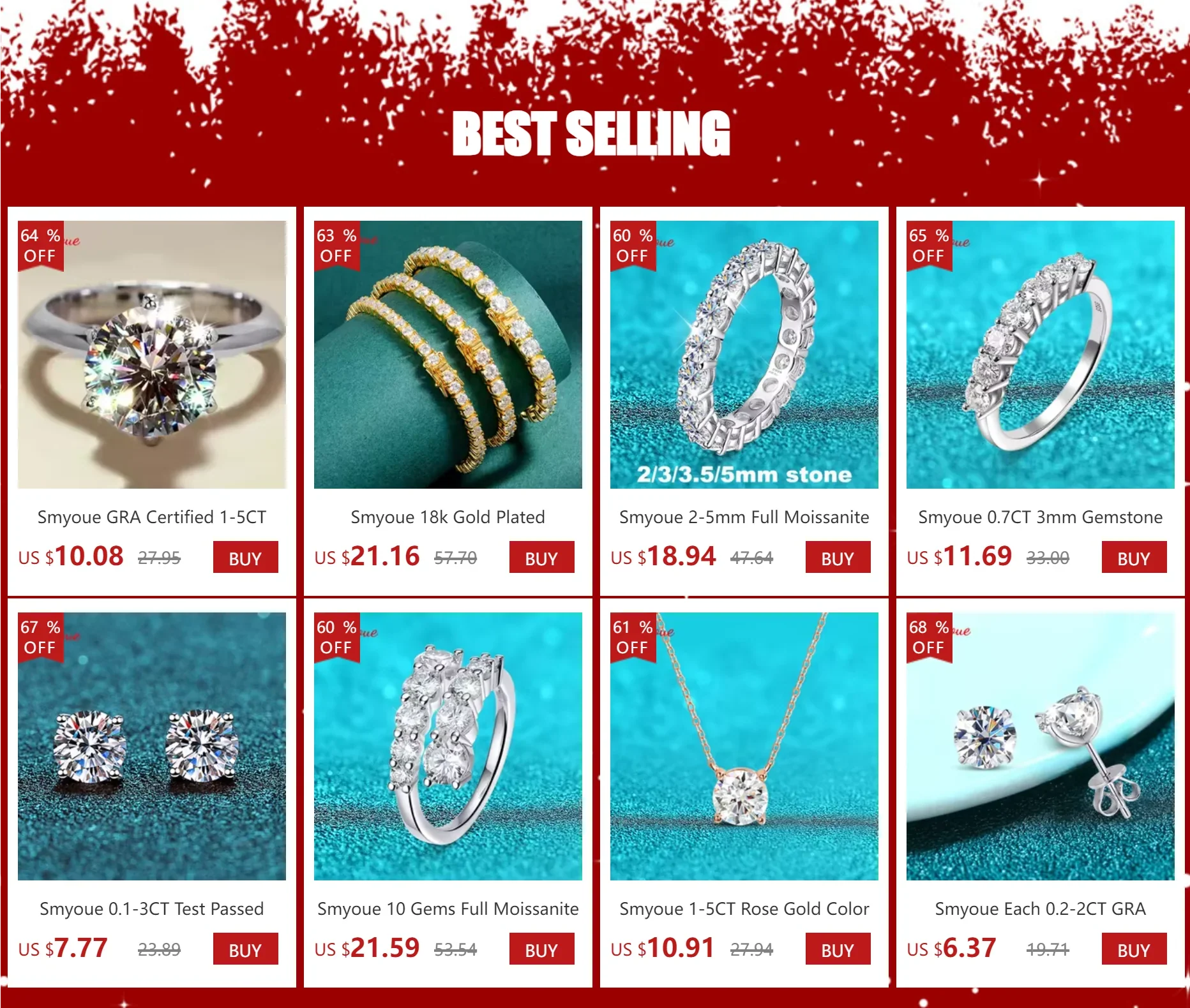Main stone:2/2.5/3/3.5/4/5/6.5mm moissanite stone