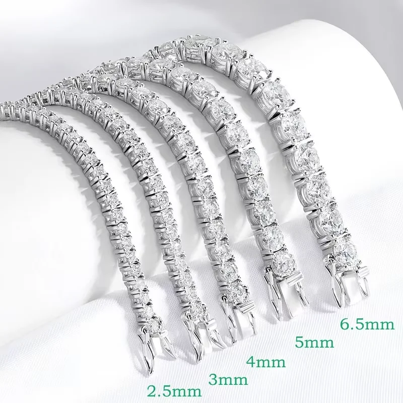 Smyoue 2-6.5mm Real Moissanite Tennis Bracelet for Women Christmas Gift Platinum Plated 100% 925 Sterling Silver Wedding Jewelry