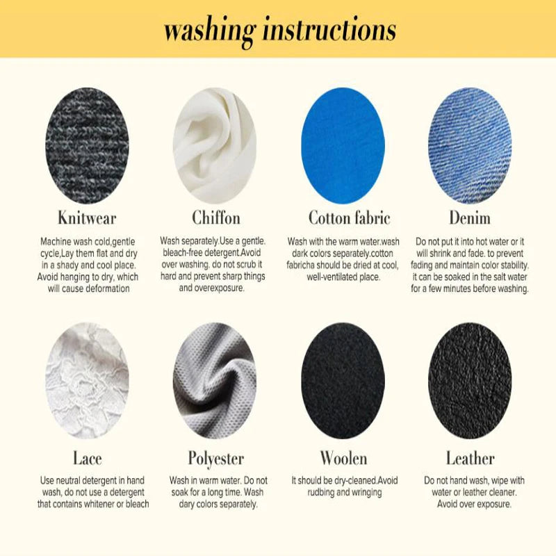 5. Wash just for cold water,serpeately washing, washing powder and soap ,low medium ironing,hanging dry for storage.