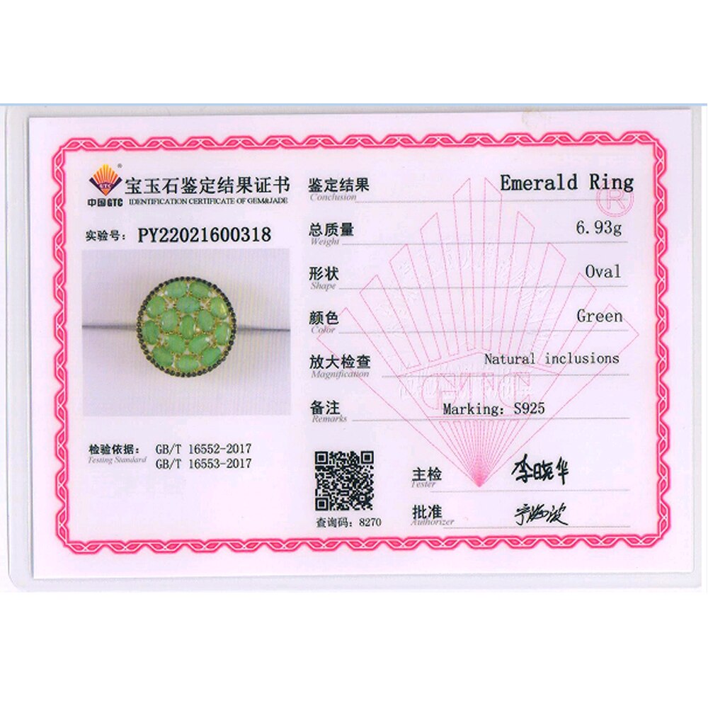 Luxury Natural zambia Emerald oval 4*6mm big Ring 925 sterling silver Women