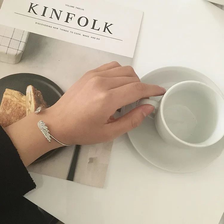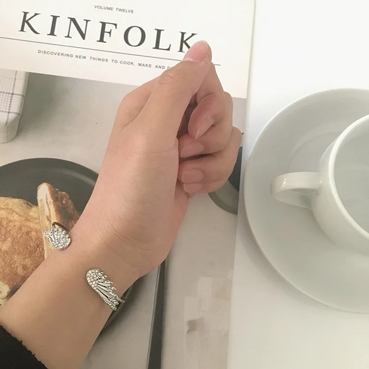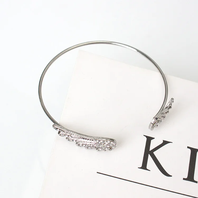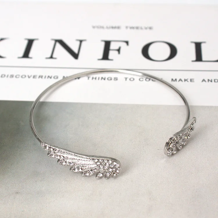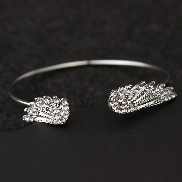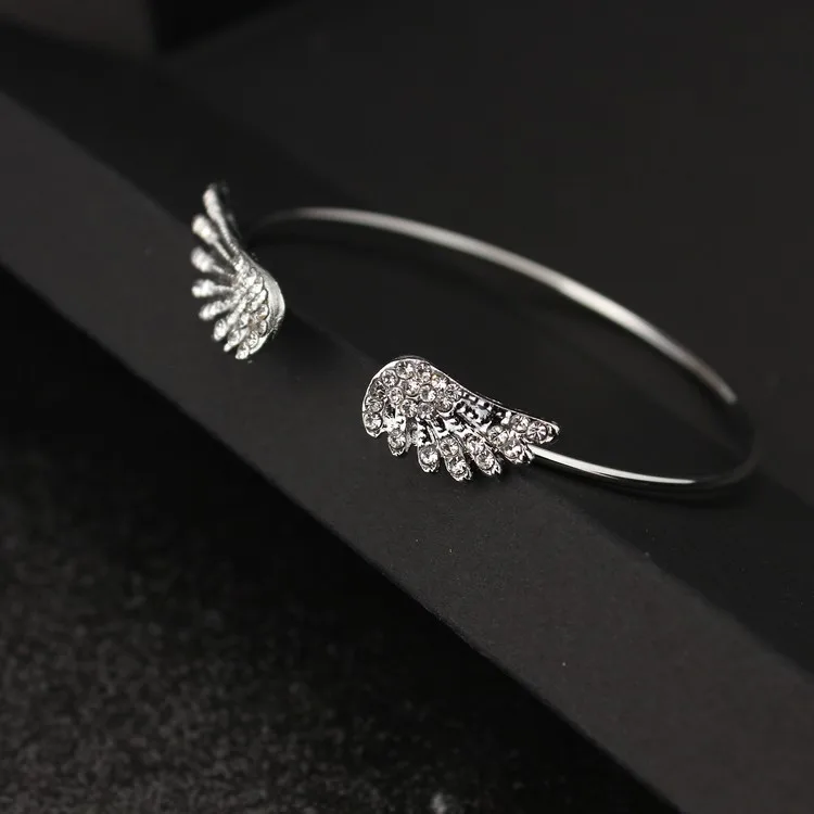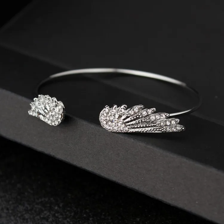 Wholesale Angel Wings Bracelet Adjustable Women Silver Cuff Feather Jewelry Gift Open Bracelet Silver Crystal Pulseira Feminina