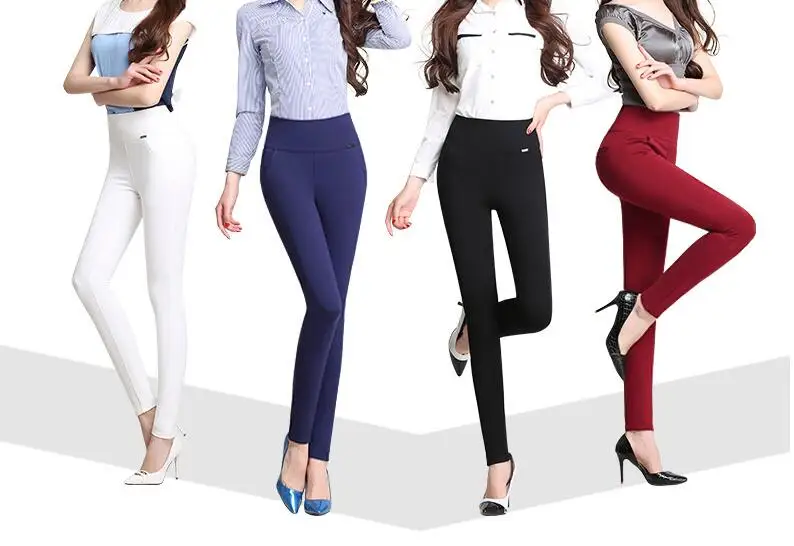 Women Pants Slim Trousers Elastic Leggings High Waist Pencil Pants Lady Daily