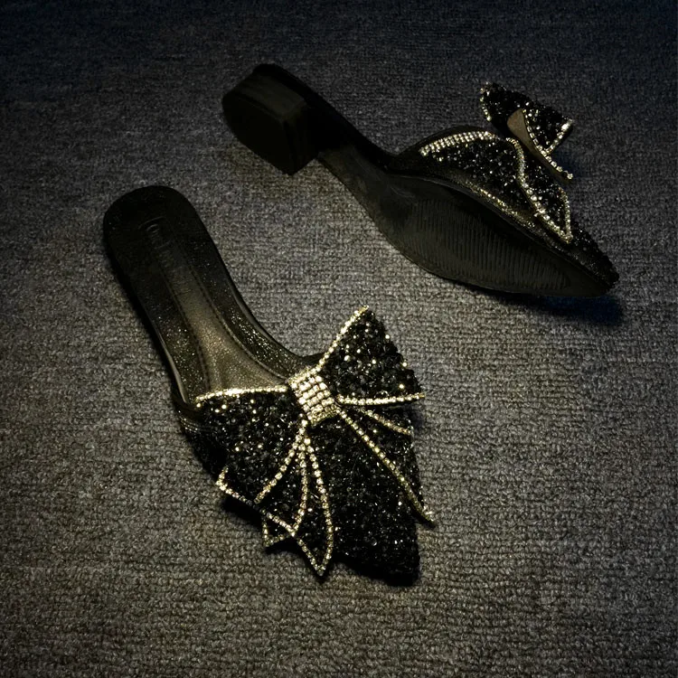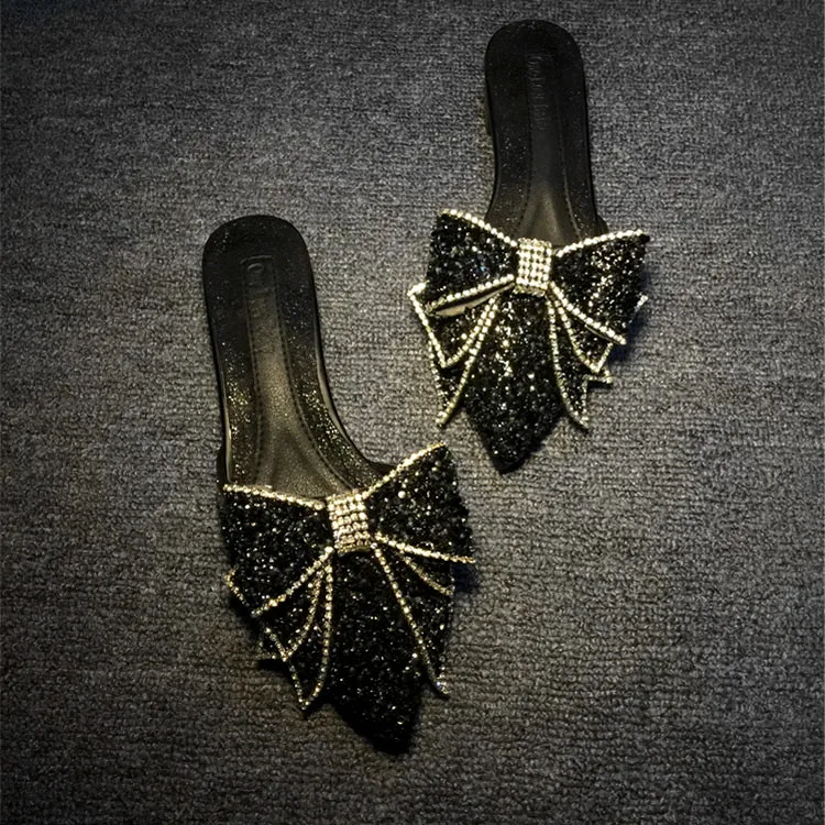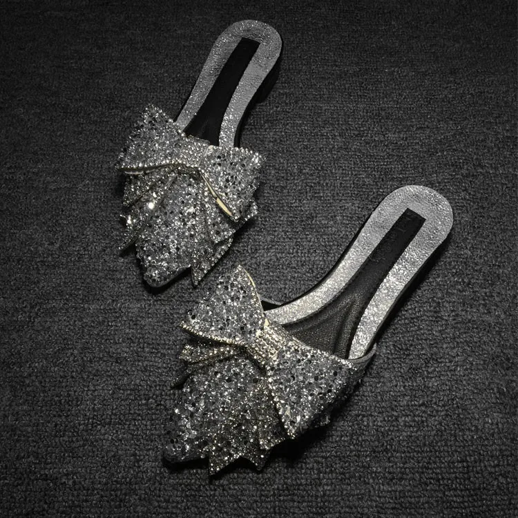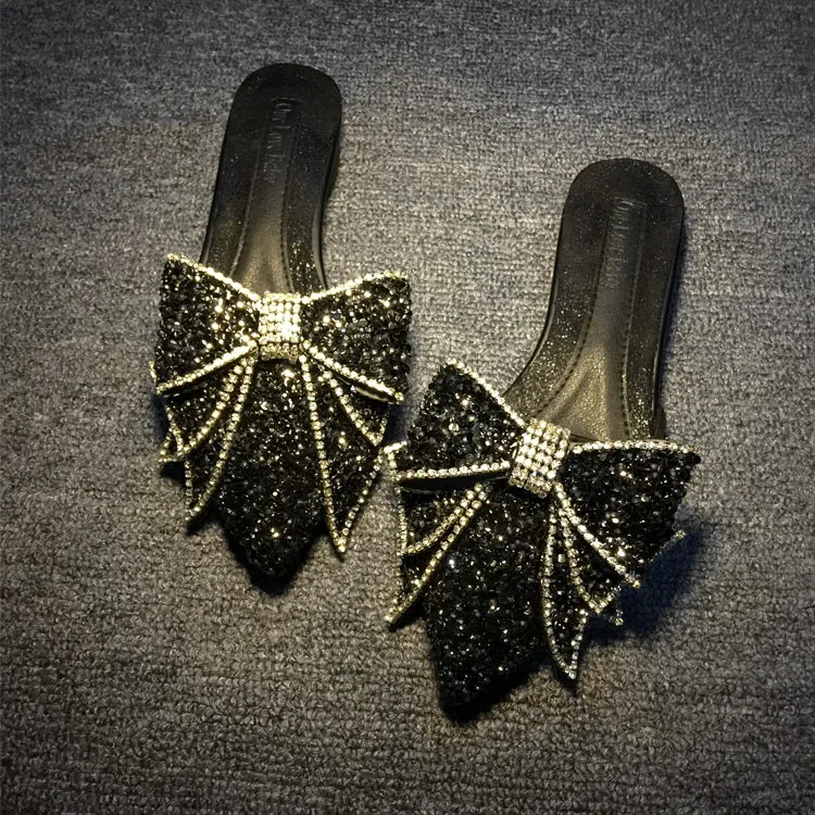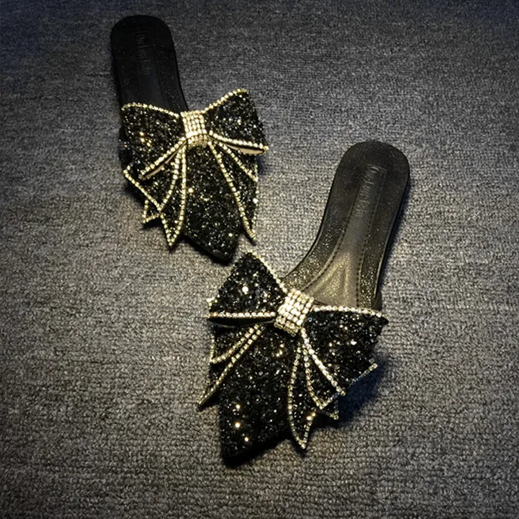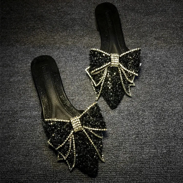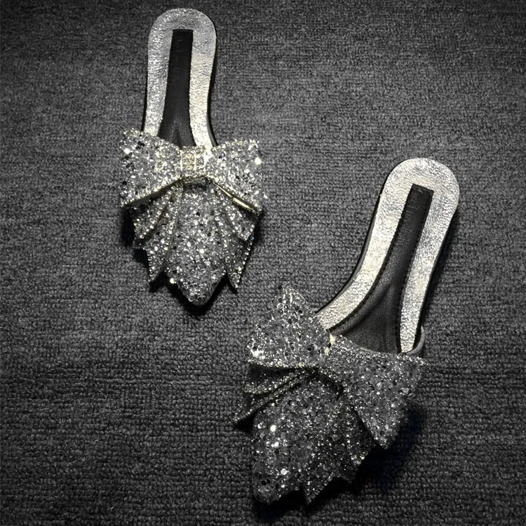Women's Bow Sandals Summer Rhinestone Slippers Female Footwear