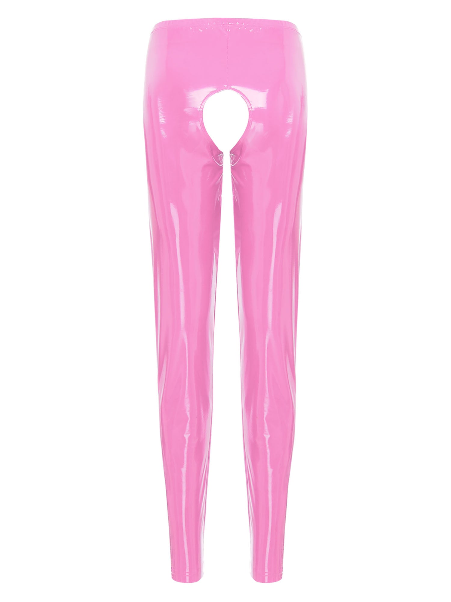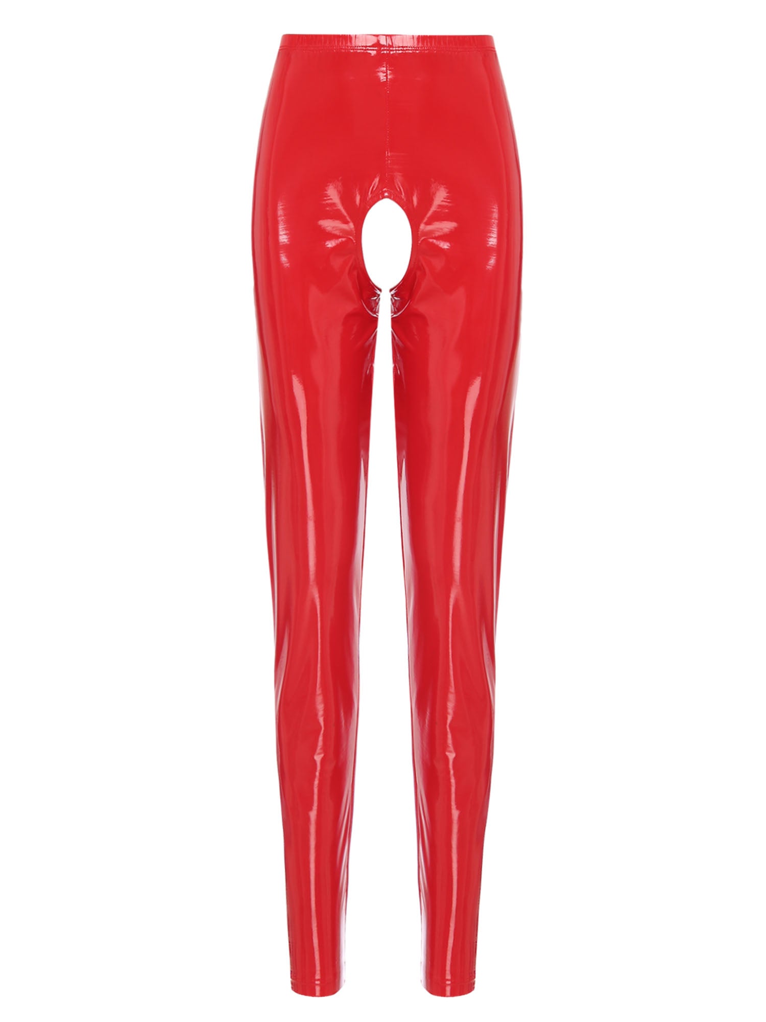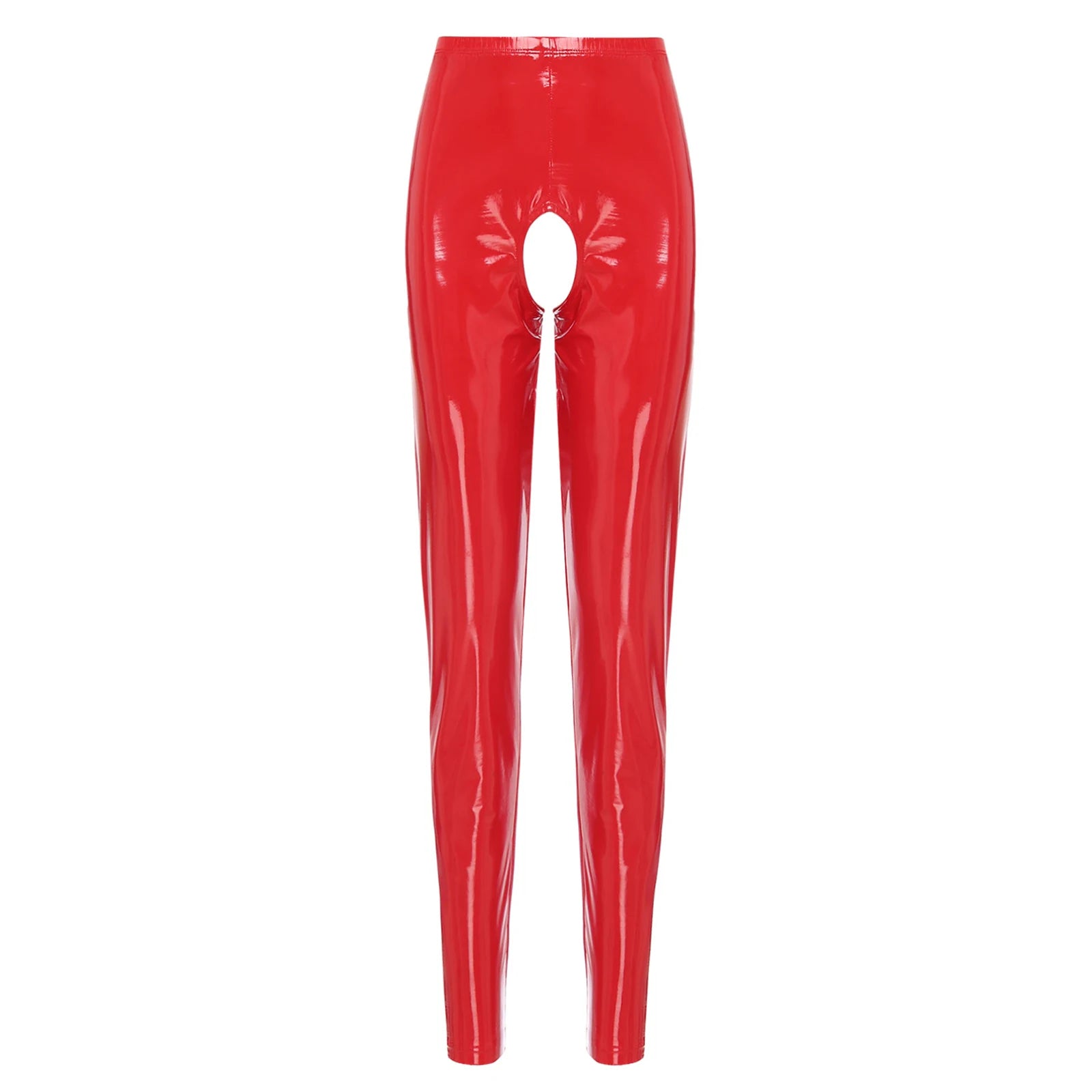 Women's Wet Look PVC Leather Open Crotch Butt Leggings
