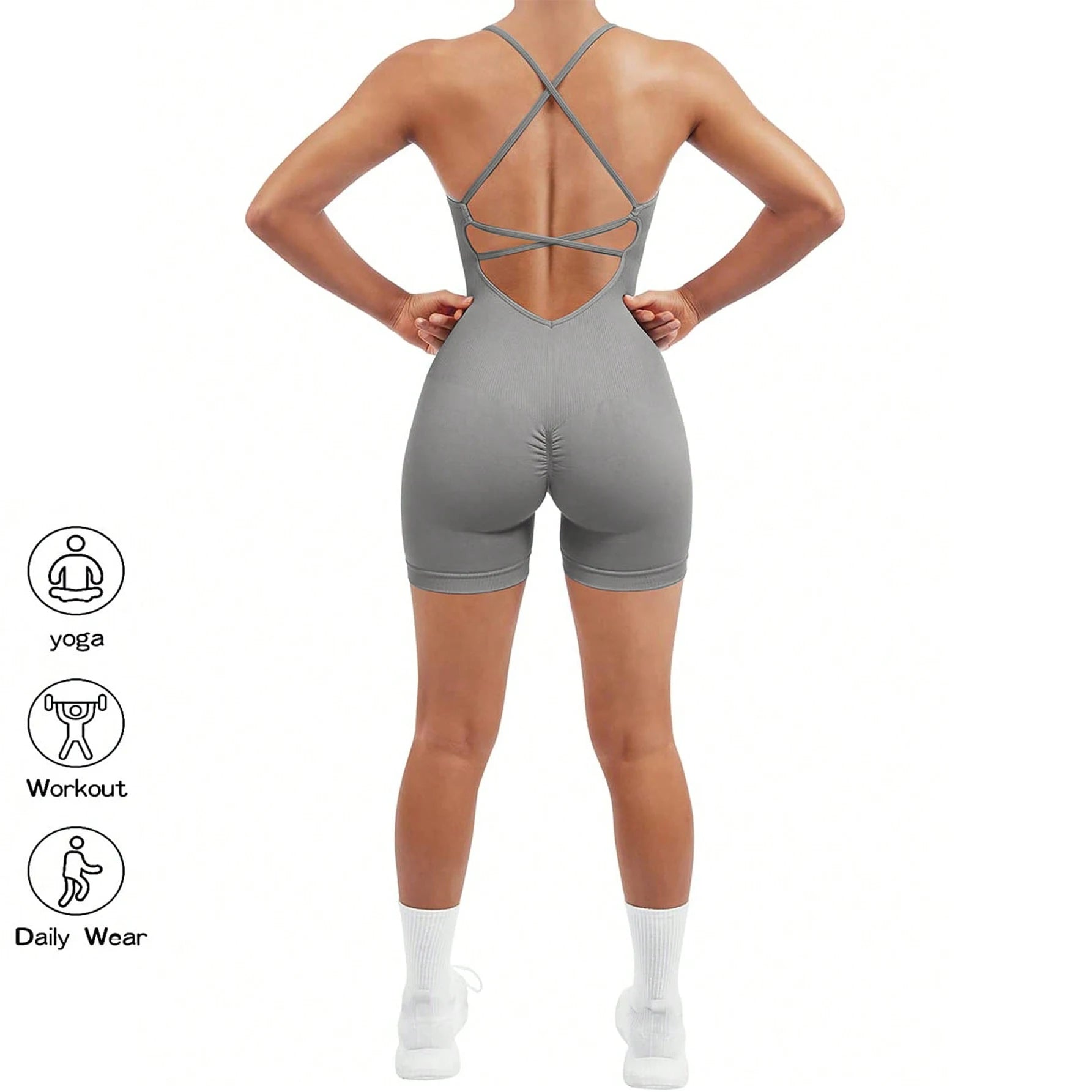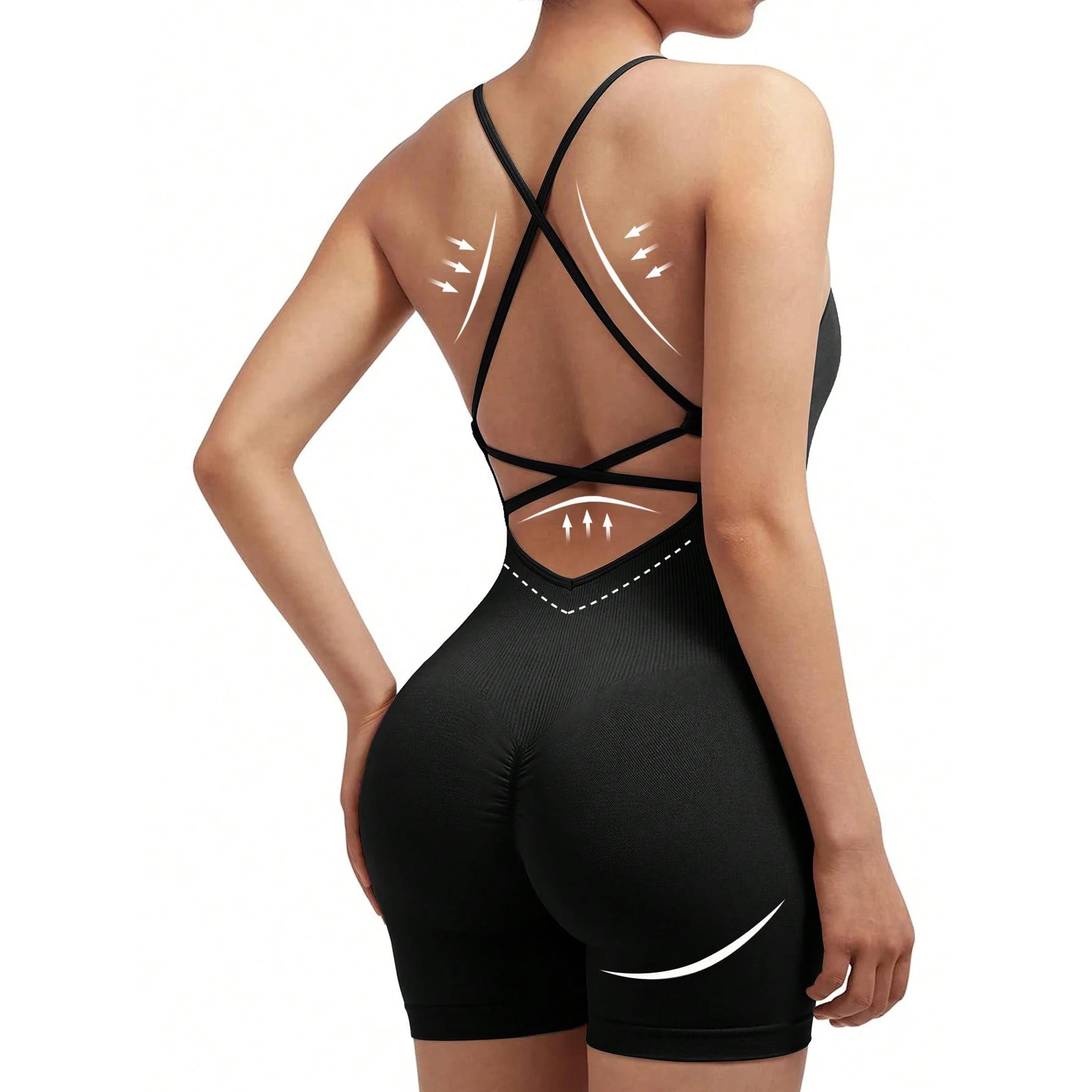 Available in Various Colors: Whether you’re into classic black or prefer brighter tones, our Yoga Criss Cross Backless Cami Sports Romper comes in a variety of colors, allowing you to mix and match with your favorite gym wear for ladies.