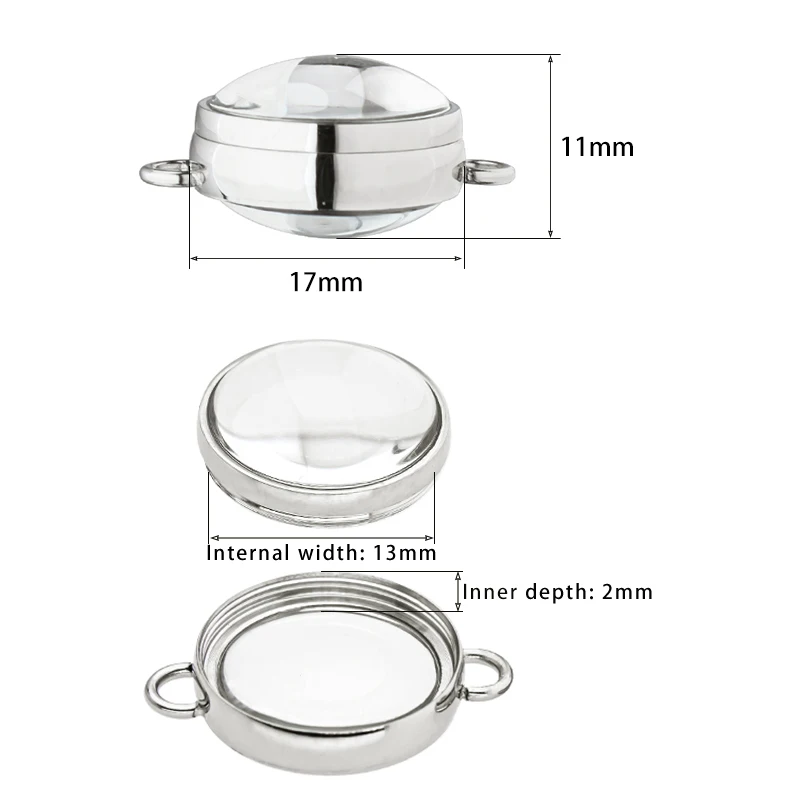 13pcs 17mm 23mm 28mm Women Bracelet Floating Locket Double Curved Glass Living Memory Locket Stainless Steel Jewelry Medallion