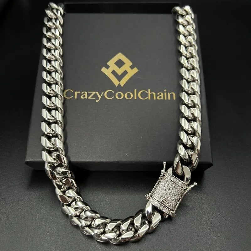 Cuban link chains have long been celebrated for their unique design and robust construction. The interconnected links create a sleek, bold look that adds a touch of luxury to any outfit. This 14mm Cuban chain is crafted with meticulous attention to detail, ensuring that you get a piece that not only looks great but also stands the test of time.