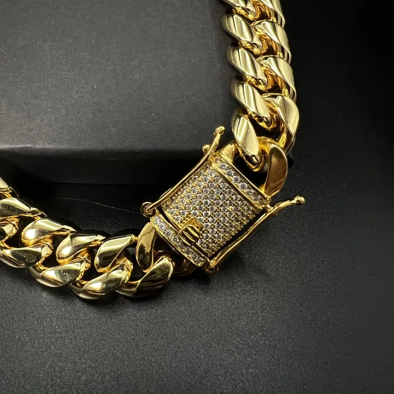 This 14mm 18K Gold 5-Layer Plated Premium Durable Cuban Chain is more than just a piece of jewelry; it's an essential component of any stylish wardrobe. Its durability, versatility, and timeless appeal make it a must-have for anyone looking to enhance their jewelry collection.