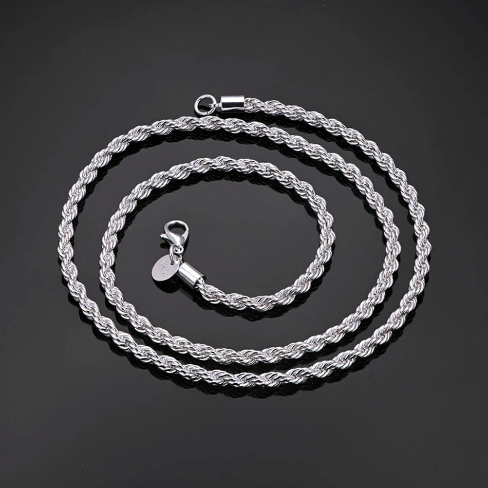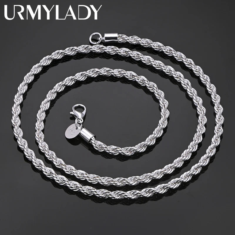 16-24 inch for women men Beautiful fashion 925 Sterling Silver charm 4MM Rope