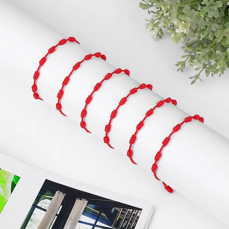 2/200Pcs 7 Knots Red String Couple Bracelet Women Men Lucky Amulet Handmade Rope Friendship Wristband Jewelry Gifts Accessory