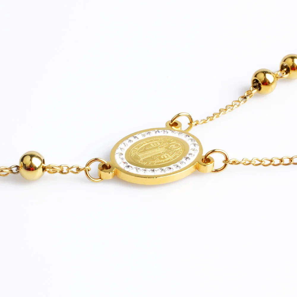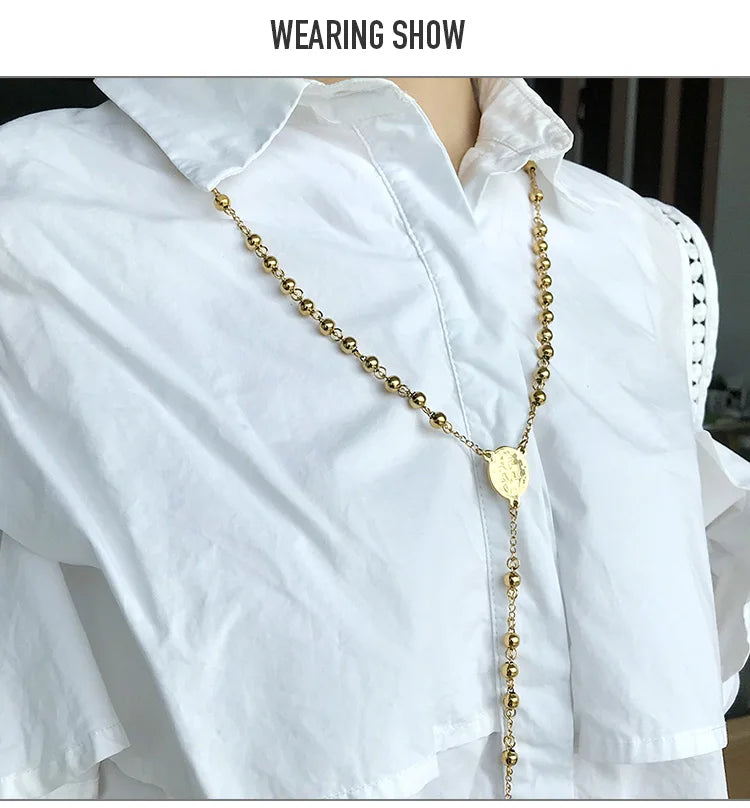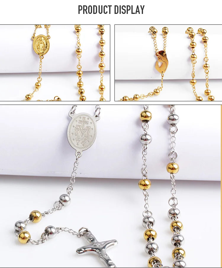 Rosary Beads Design: The unique rosary beads add a distinctive touch to this necklace. Each bead is carefully crafted to provide a comfortable fit while enhancing the overall aesthetic. This design not only showcases your faith but also elevates your style, making it a standout piece in your jewelry collection.