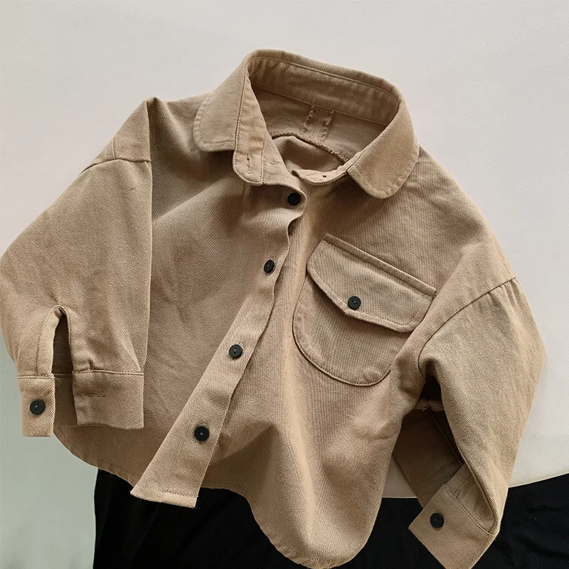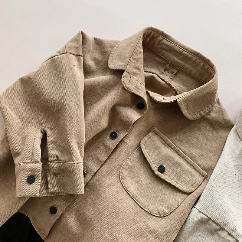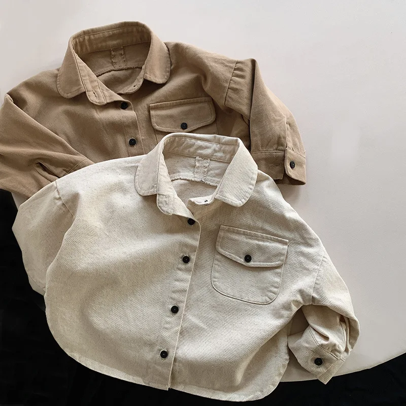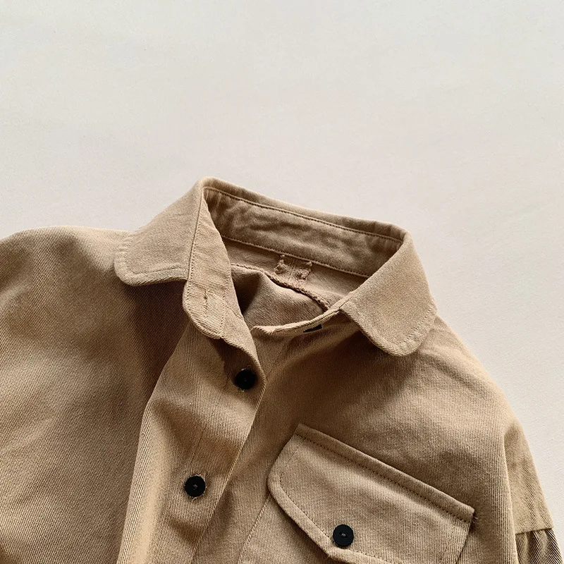 Children Long Sleeve Shirts Jacket Baby Pocket Coat Fashion Girls Cardigan Vintage