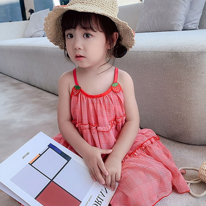 Perfect for both casual outings and special occasions, this baby kids clothes essential is a great addition to any summer wardrobe. Its cute strawberry motif and airy design make it a standout choice for girls dresses that are both fashionable and functional.
