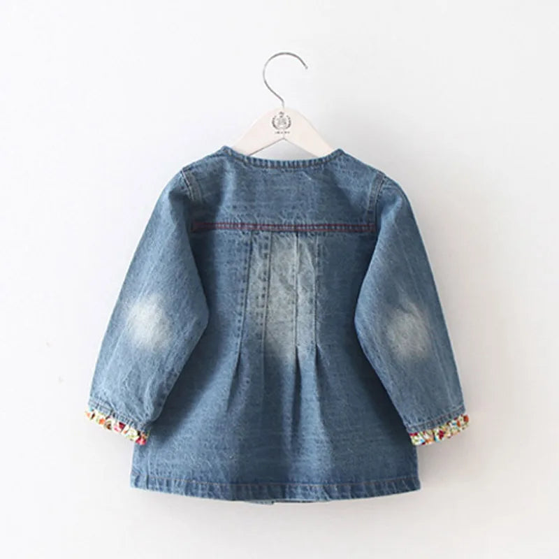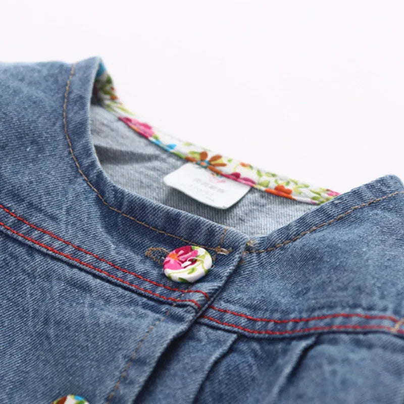 Introducing the Fashion Children Baby Floral Button Patchwork Denim Blue Long Jacket – the perfect blend of style, comfort, and functionality for your little girl. This charming girls jacket is designed to keep your child warm and stylish throughout the seasons.
