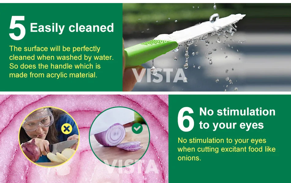 Unmatched Sharpness: Each knife features a sharp ceramic blade, ensuring clean cuts with minimal effort. This makes our set one of the best cooking knives available, perfect for any chef with knife skills.