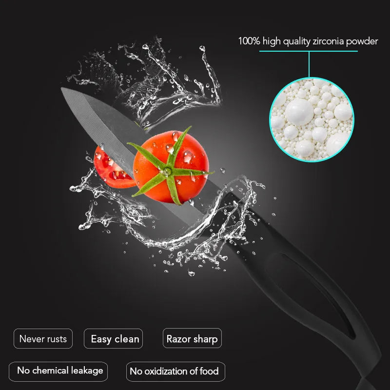 This ceramic knife kit includes3'' 4'' 5'' knife. The blade is made of ceramic, and the handle is made of ABS material.