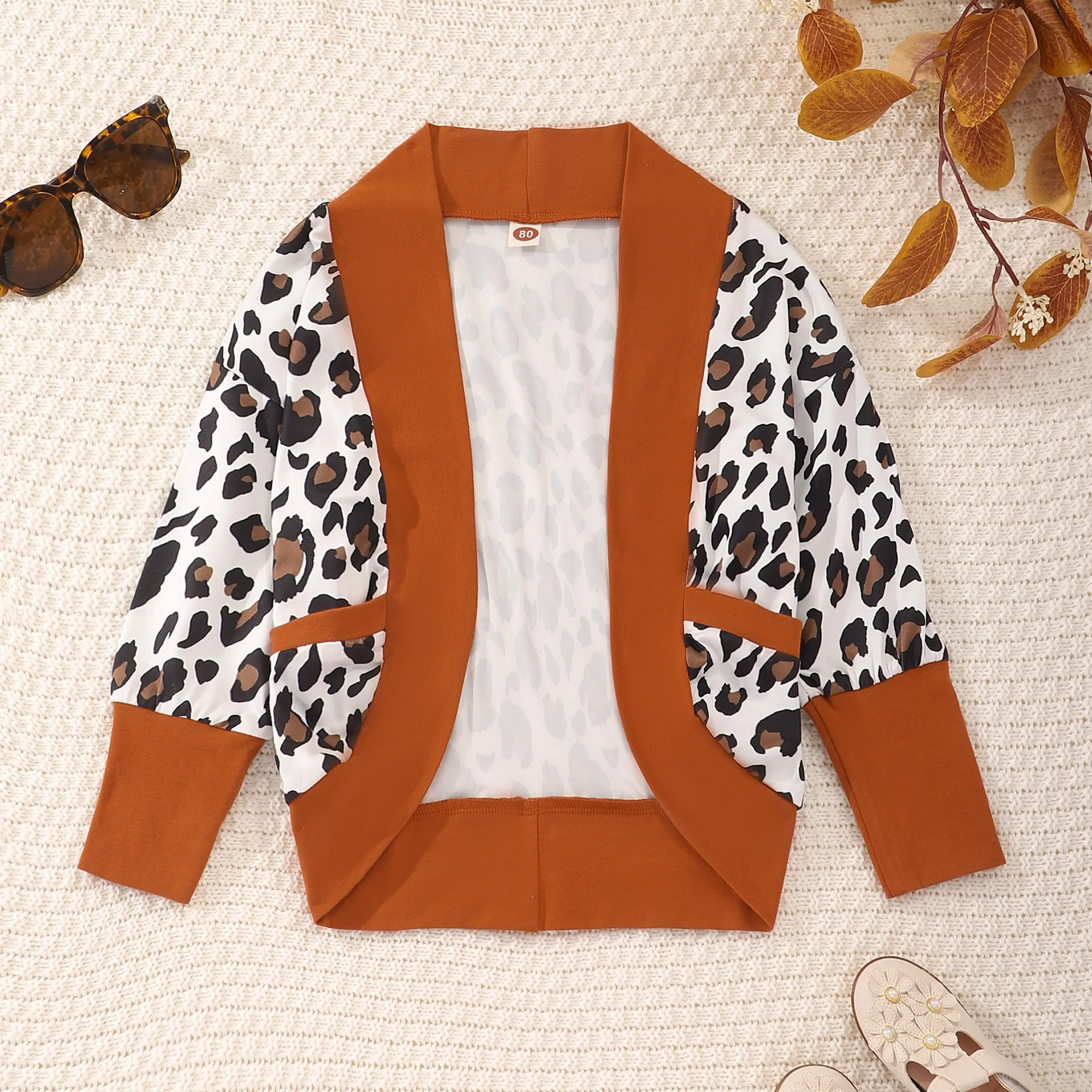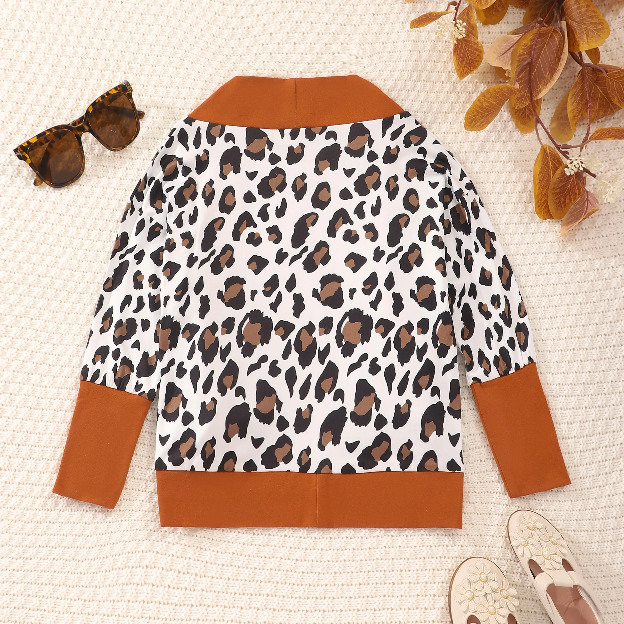 Discover the Perfect Blend of Style and Comfort with Our 2023 Spring and Autumn Girls Clothing Long Sleeve Leopard Pocket Cardigan Coat
