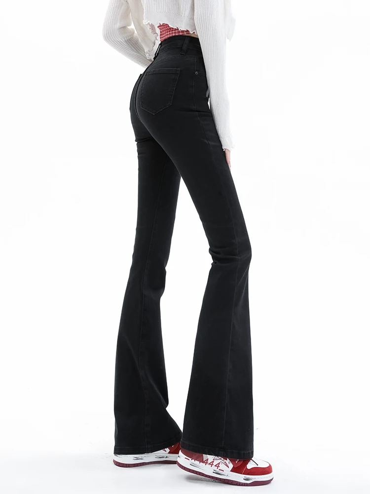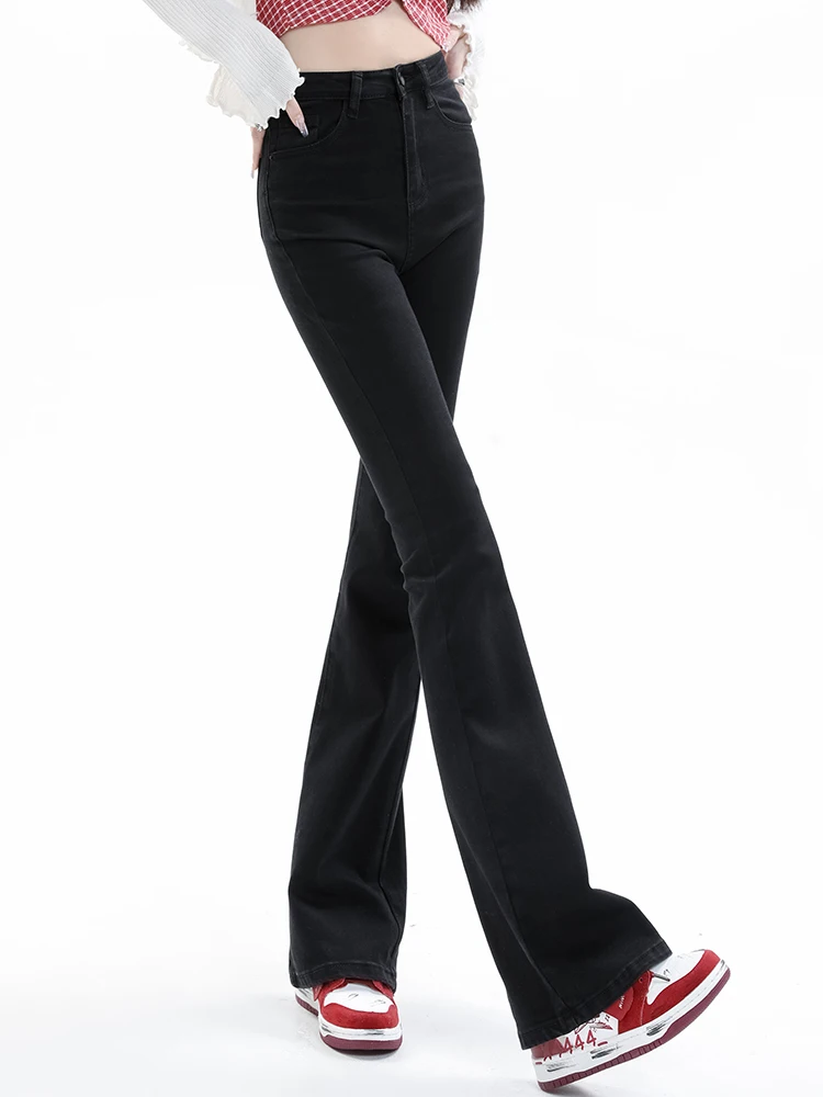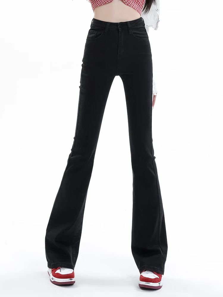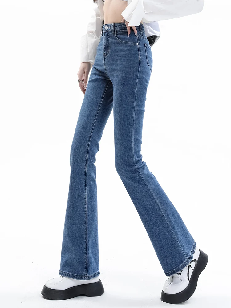 2024 Elegant Women Flare Stretch Moustache Jeans Skinny Bell Bottom High Waist Denim