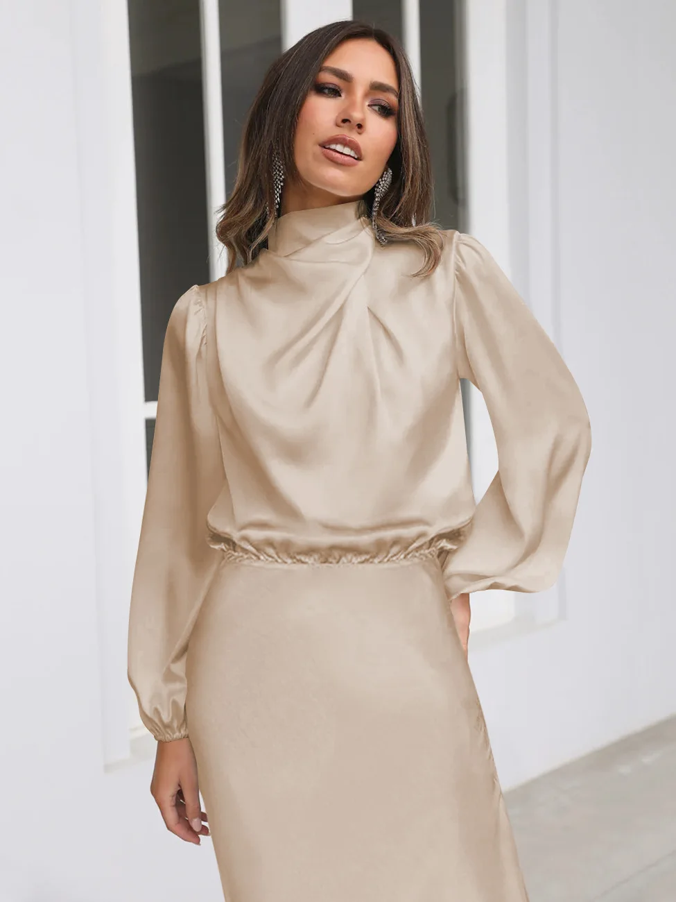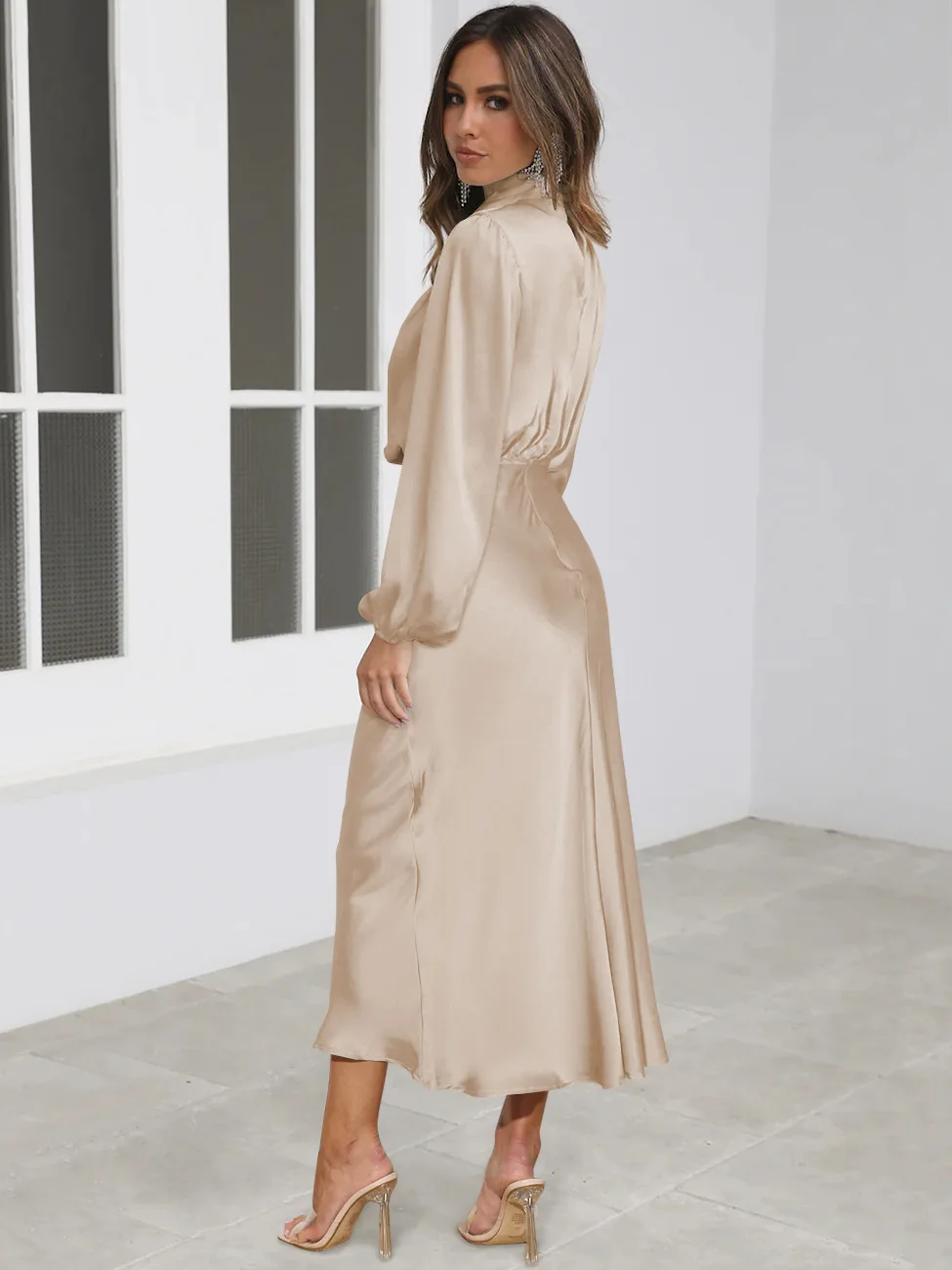 The Long Sleeve Loose Fitting Dress features an elegant design with long sleeves that provide a touch of modesty while adding a sophisticated flair. The loose-fitting silhouette offers both comfort and style, making it perfect for formal dresses for women. The high-quality fabric drapes gracefully, creating a flattering and elegant look suitable for various occasions. Whether you're attending a formal gala, a prom, or a special evening event, this dress is ideal for those seeking cheap prom dresses and easter dress women.