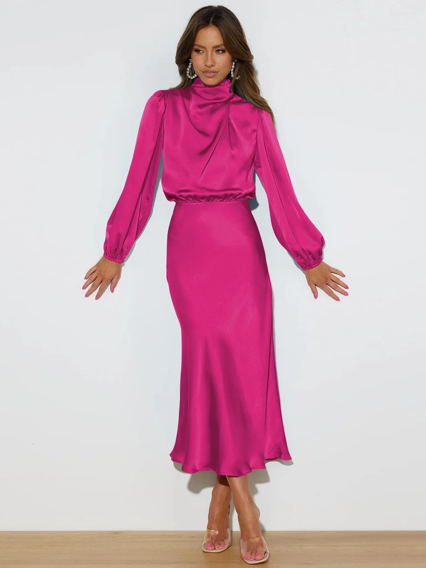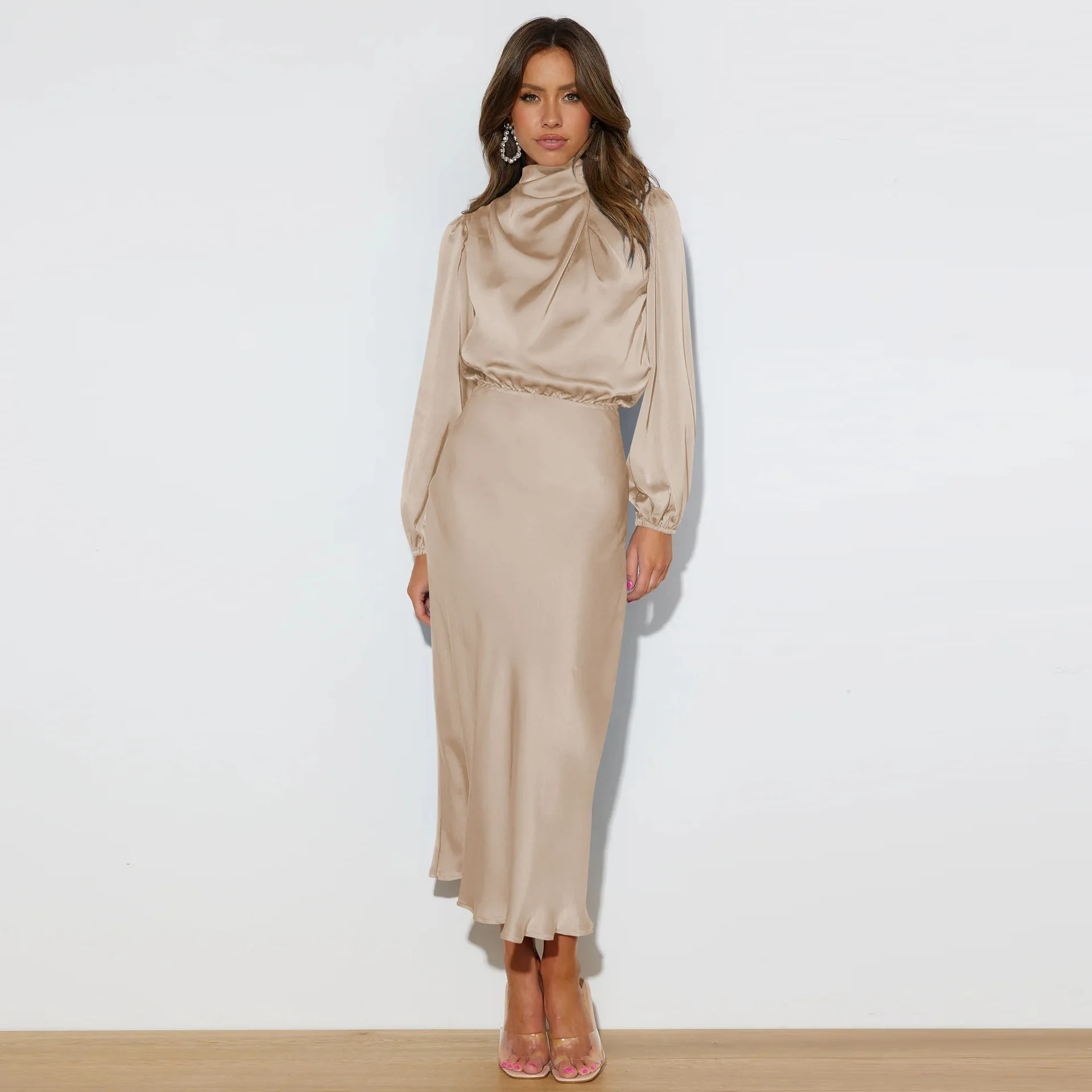 Order now and embrace the elegance and sophistication of our Long Sleeve Loose Fitting Dress Elegant Women's Evening Dress!