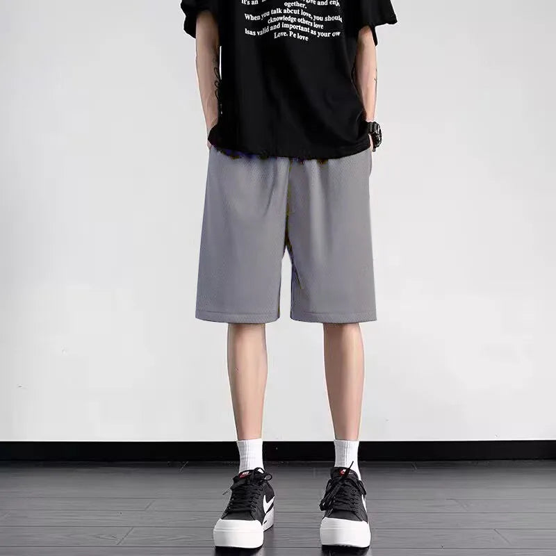 2024 New Men's Sports Shorts Fast Slow Run Breathable Quick-Dry Mesh Shorts Gym Fitnesssolid Color Polyester Casualwear