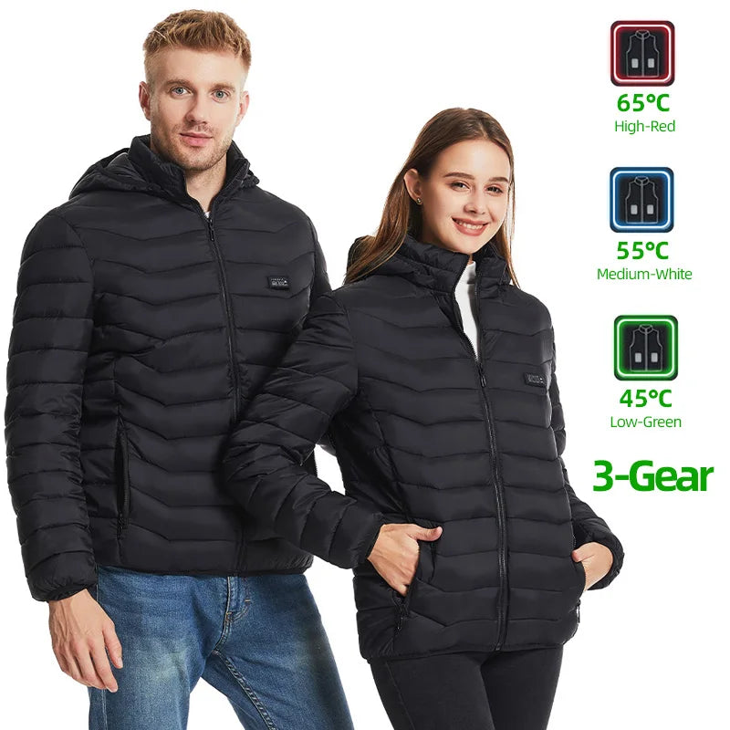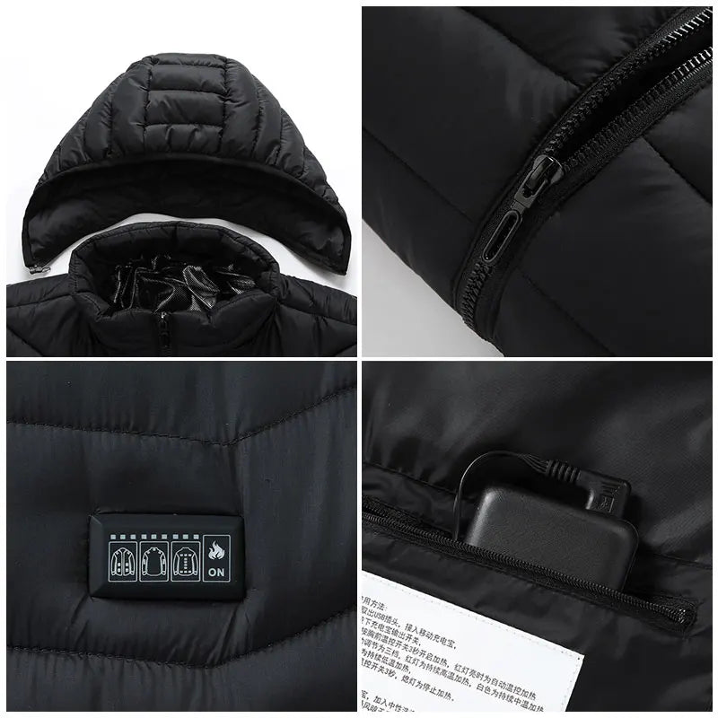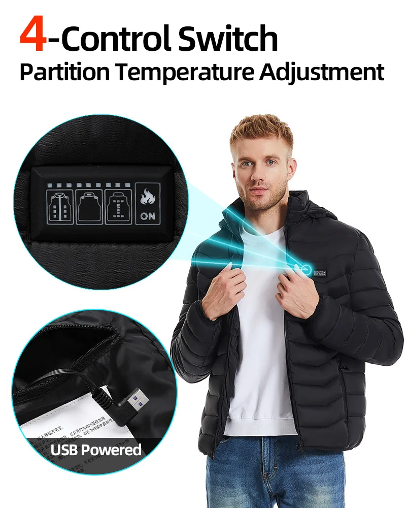 Electric Heated Jacket Is A New Intelligent Clothing With Built-in Heating System And Charging Treasure For Heating. In The Cold Winter, Important Parts Of The Body Are Kept Warm And Heat Is Transported To The Whole Body Through The Blood Circulation.heated Jacket Adopts New Type Nanocomposite Fiber Heating Material Has The Characteristics Of Anti-rubbing,Uniform Heating, Fast Heating, High Temperature And Long Service Life.