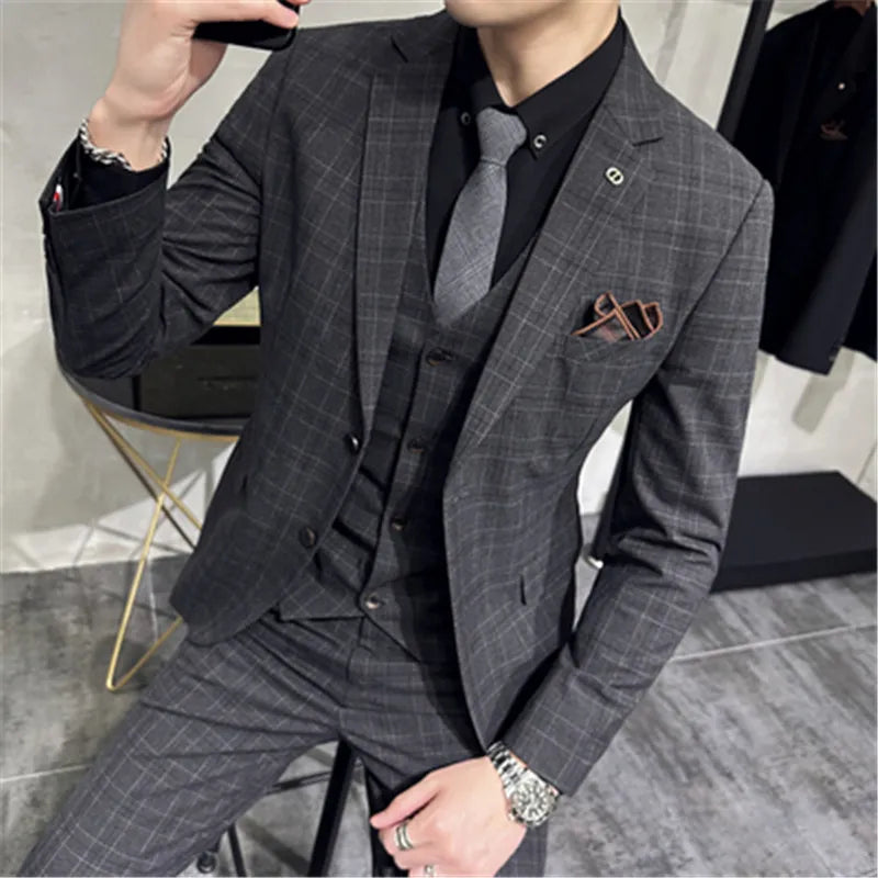 Invest in a suit that reflects your unique style and personality. Our 3 Pieces Men's Suit Set for Wedding Blazer Pants Sets Classic Plaid Suit Slim Fit will ensure you look and feel your best, no matter the occasion. Don't just attend the event; own it.