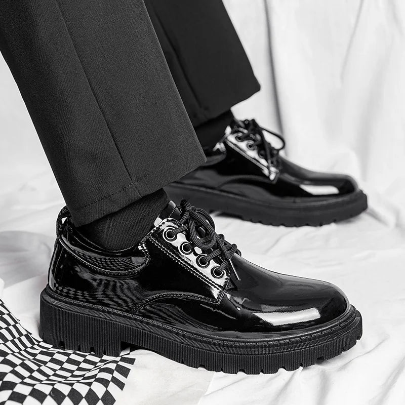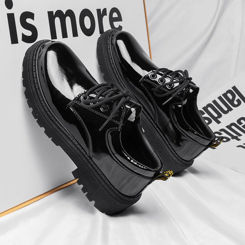 Classic Black Outdoor Walking Platform Dress Men’s Leather Shoes