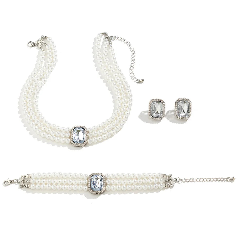 Package include:1*3Pcs pearl necklace bracelet bracelet earrings set