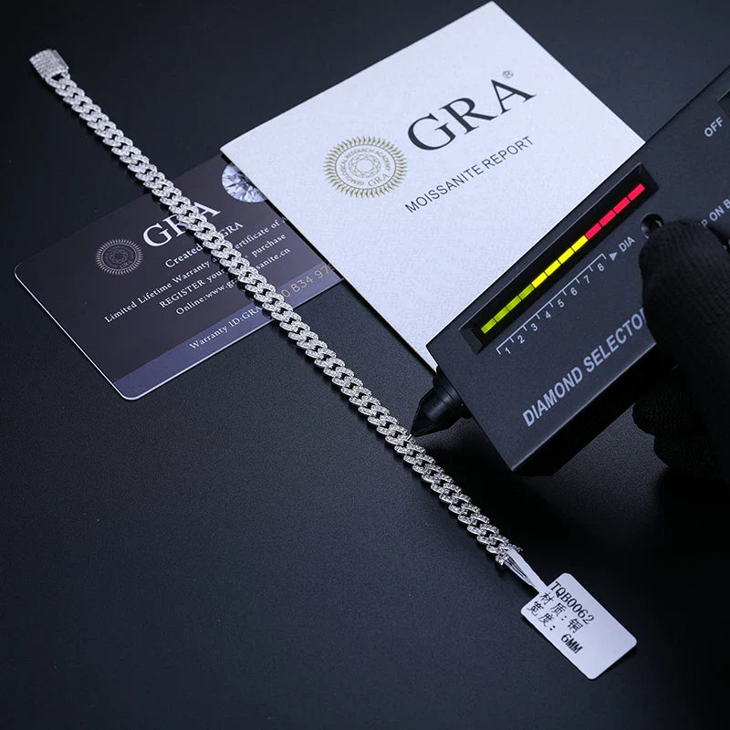 6mm Solid 925 Sterling Silver Miami Cuban Chain Bracelet For Women Men Iced Out Moissanite GRA Certified Hip Hop Jewelry Gifts