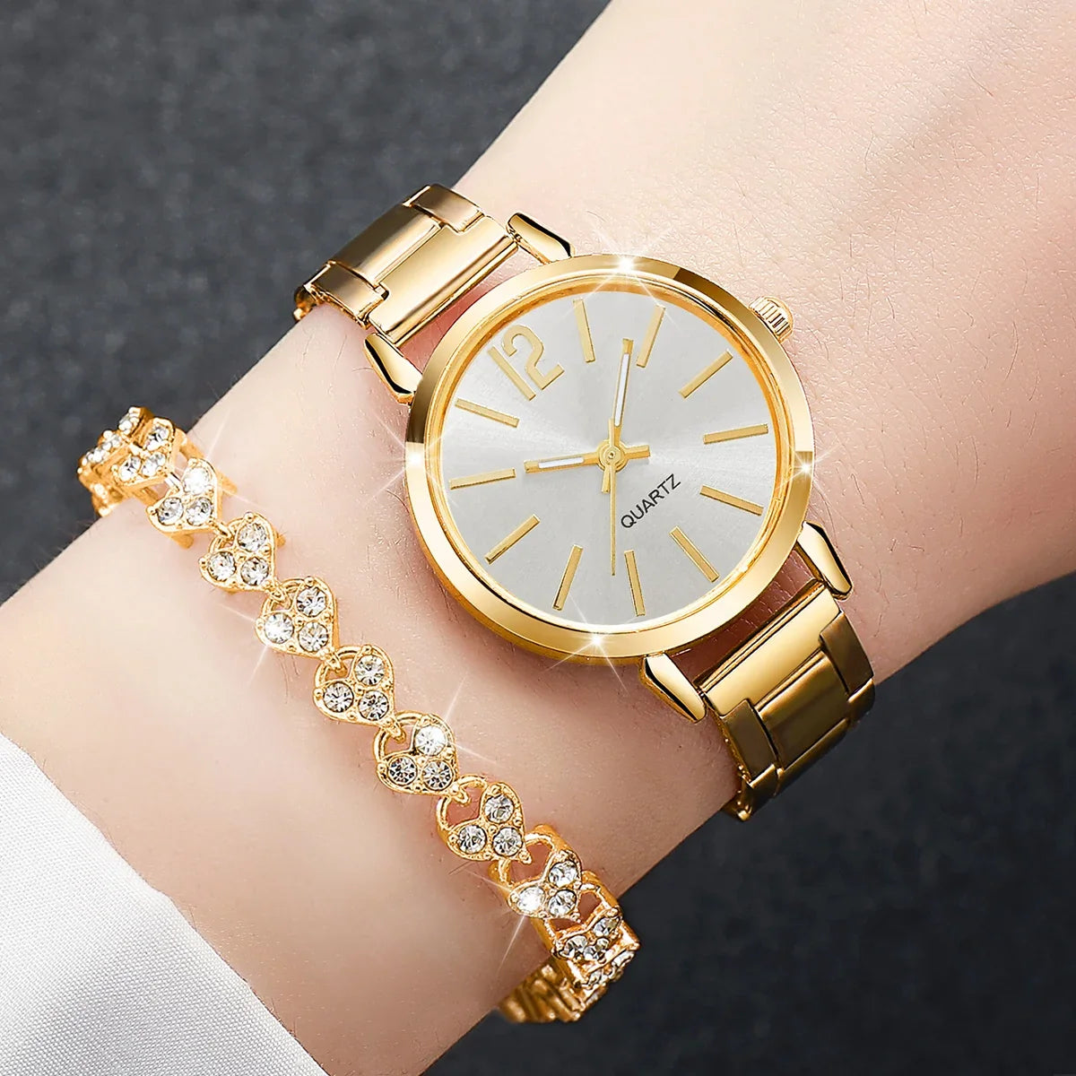 6PCS/Set Women's Watch Fashion Steel Band Quartz Watches Diamond Bracelets Set(Without Box)