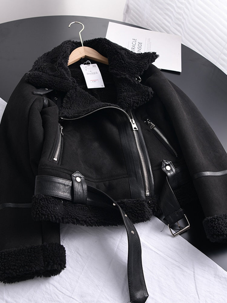 Winter Women Thick Warm Jacket Short Motorcycle Coats