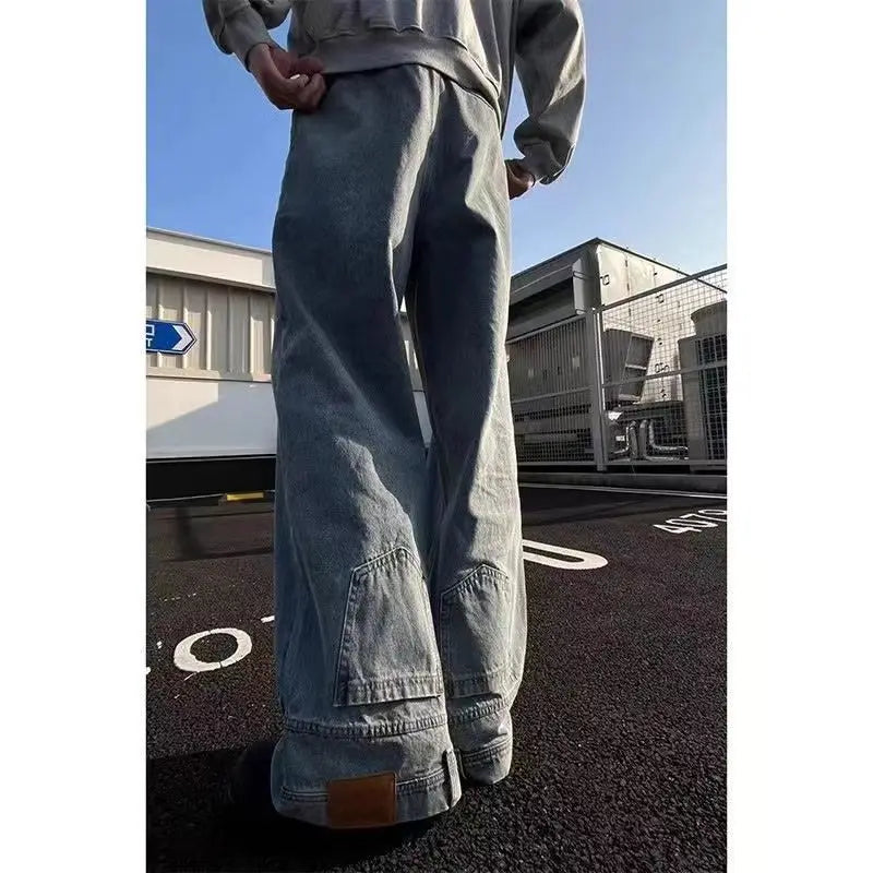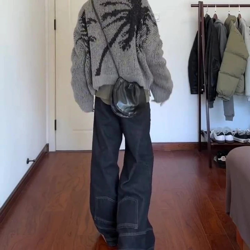 American Retro High Street Women Jeans Y2K Fashionable Leg Design Washed High Waist