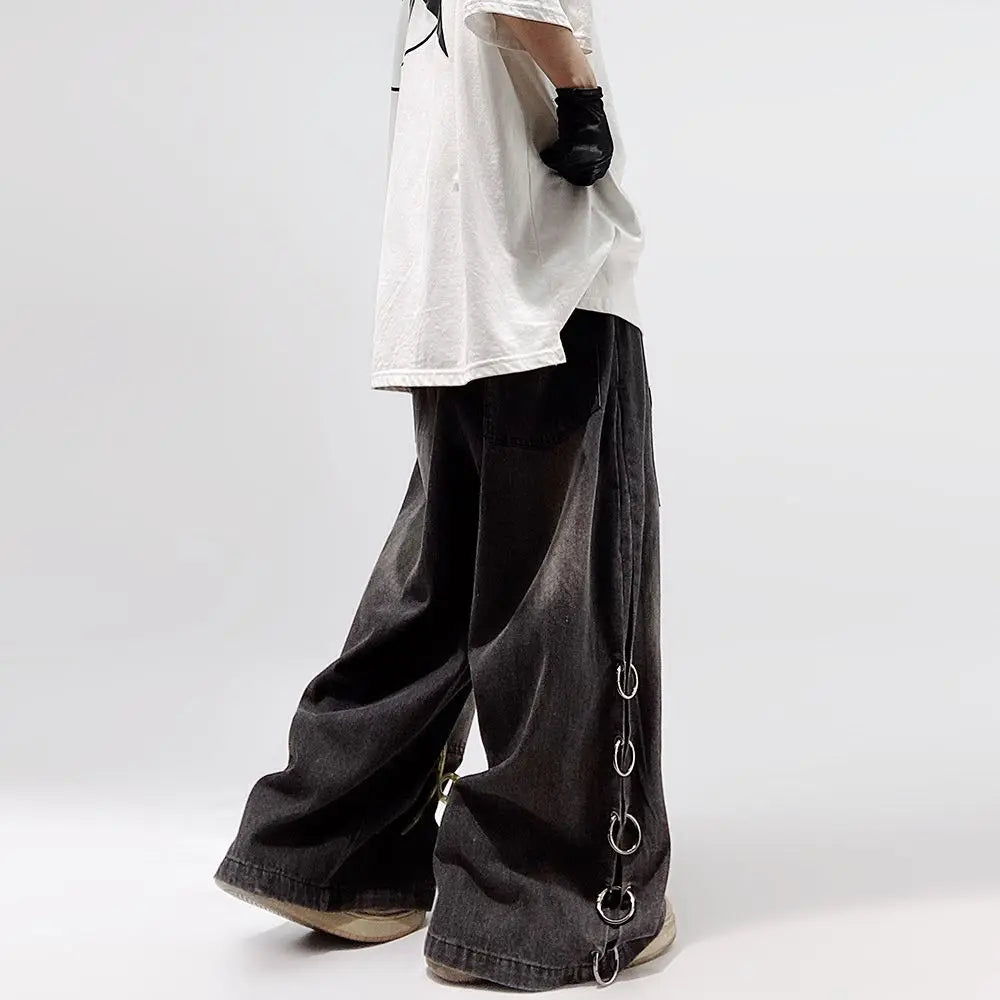 Wide-Leg Design: The wide-leg cut enhances the casual, punk-inspired look while providing ample room for movement. Perfect for those who appreciate a loose-fit style that doesn't compromise on fashion.