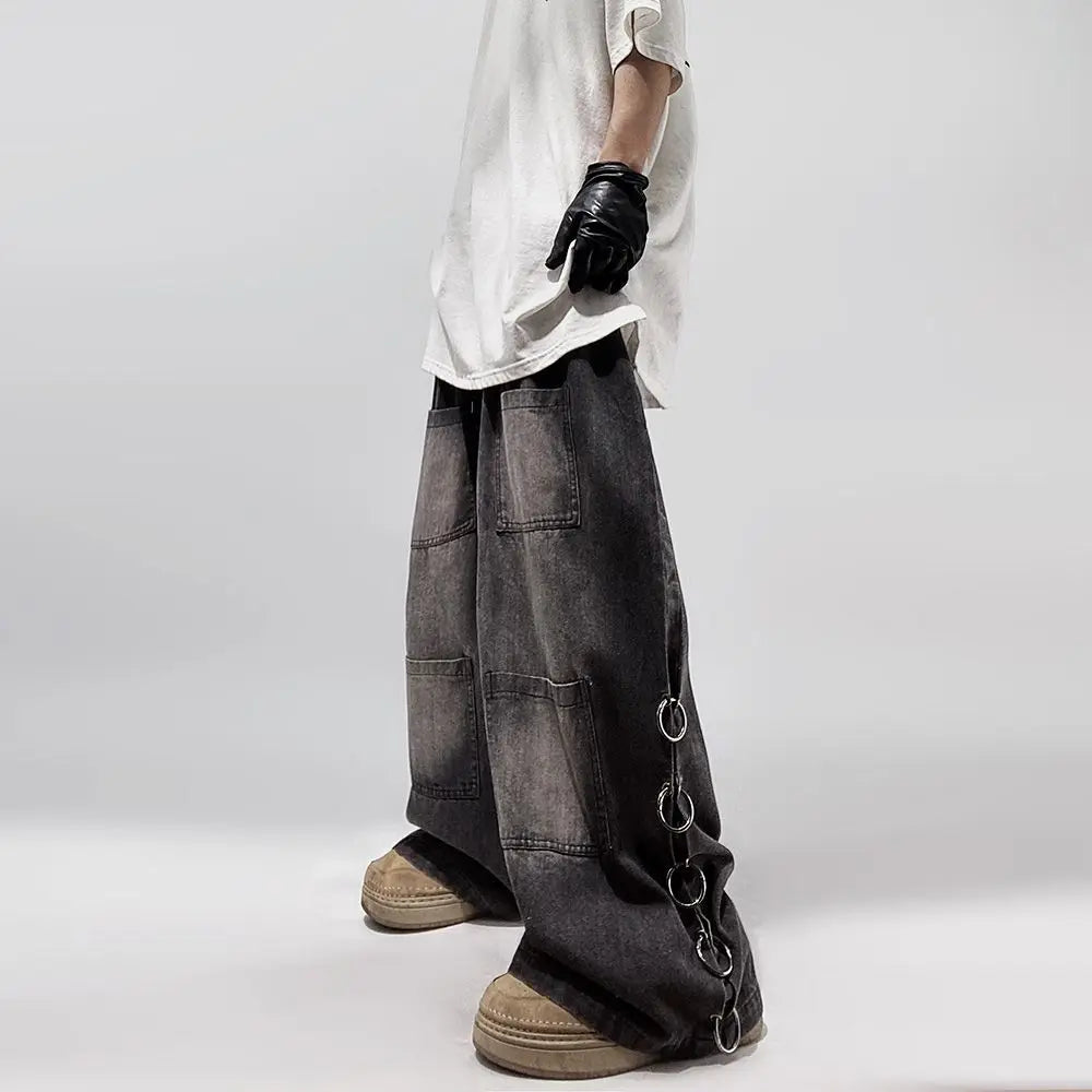 Oversized Pocket Retro Baggy Jeans Men | Y2K Hip Hop Punk Wide