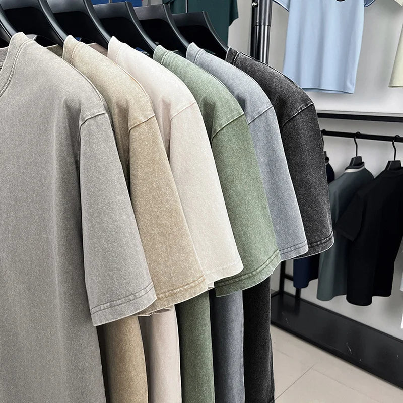 American Style Retro Heavyweight Solid Color Short Sleeved T-shirt Men Women Summer Street Trendy Washed Old Oversized Clothes