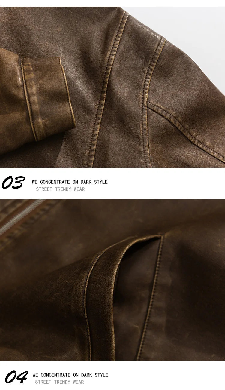 Premium Washed Leather: Made from top-quality washed leather, this jacket offers a soft, luxurious feel while retaining its rugged durability. The vintage finish provides a unique, stylish look that stands out.
